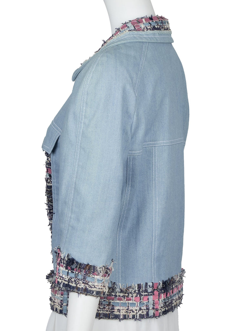Pre-Owned Jacke, Langarm, Tweed Denim, Baumwolle, Blau, Goldfarbene Hardware, Pre-Owned