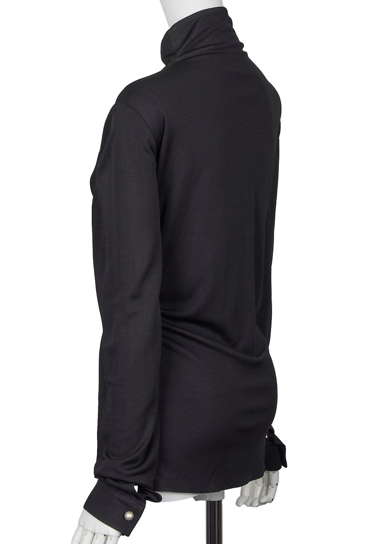Gebrauchtes Langarm-T-Shirt, Stehkragen, Cut-and-Sew, Seidenmischung, Schwarz, silberfarbene Metallteile, gebraucht