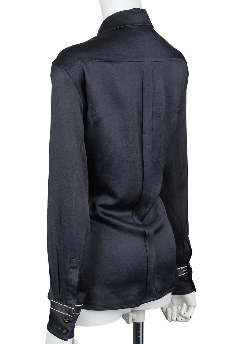 Pre-Owned Bluse Shirt Langarm Coco Button Seide Schwarz Gold-Ton Hardware Pre-Owned