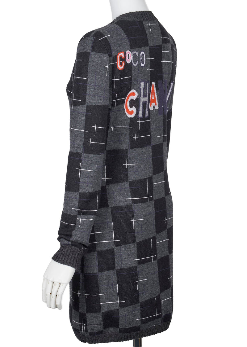 Pre-Owned Coco Button Logo Dress 36 Grey x Multicolor Knit Top Cardigan Branded Silver-Tone Hardware, Pre-Owned