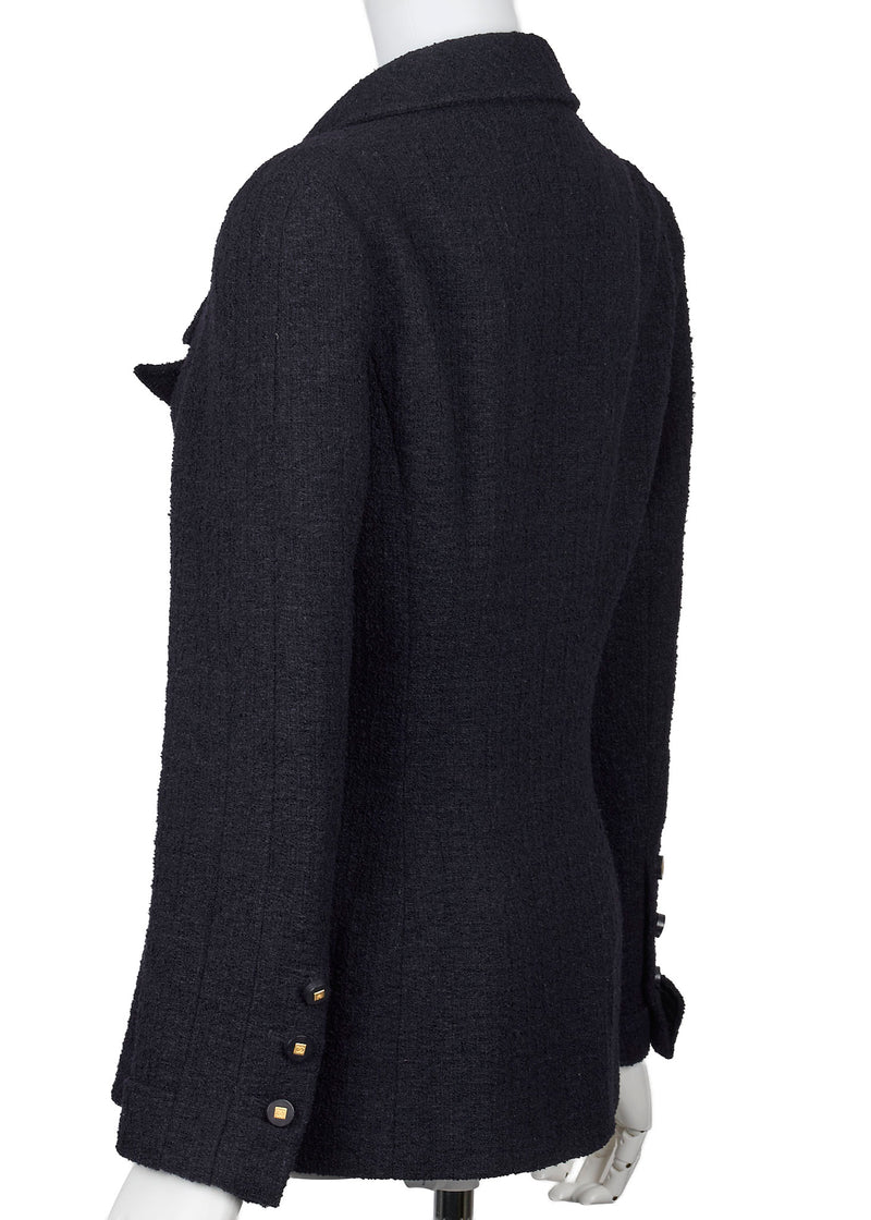 Pre-Owned Coco Button Jacket 38 Navy Top Long Sleeve Blouson Cut-and-Sew Outerwear Branded Gold-Tone Hardware, Pre-Owned