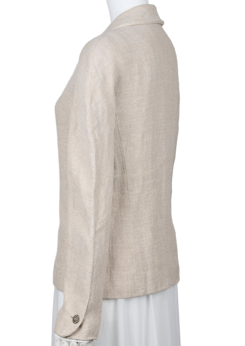 Pre-Owned Coco Button Jacket 36 Beige Top Long Sleeve Blouson Cut-and-Sew Outerwear Branded Gold-Tone Hardware, Pre-Owned