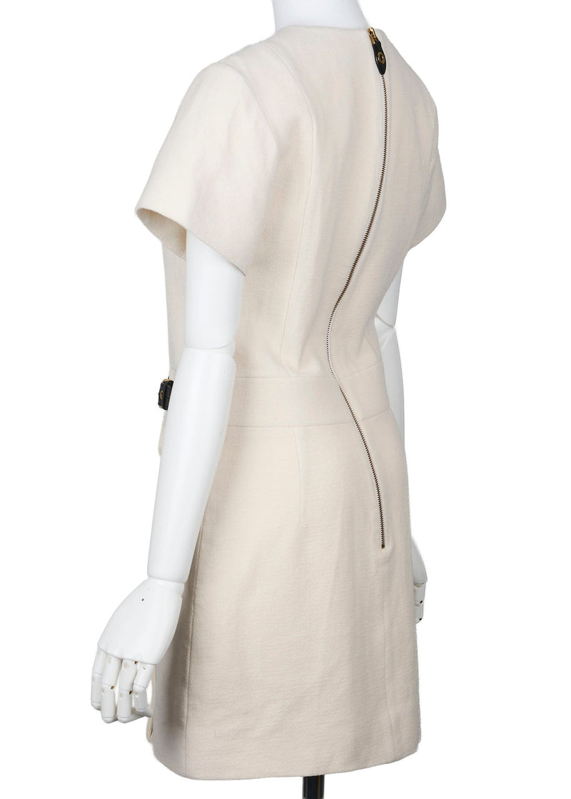 Pre-Owned VUITTON Vuitton Belt Dress 34 Ivory Short Sleeve Dress Skirt Top Brand Gold-Tone Hardware, Pre-Owned