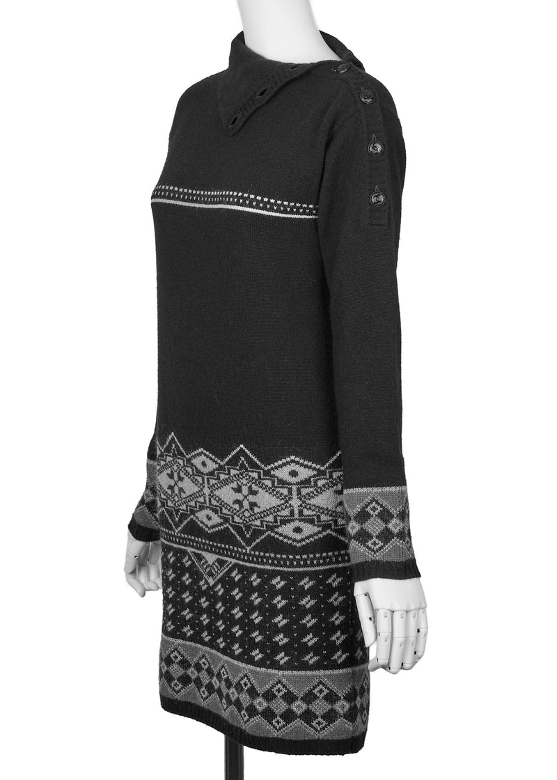Pre-Owned Coco Button Knit Dress 34 Navy Top Skirt Long Sleeve Branded Silver-Tone Hardware, Pre-Owned