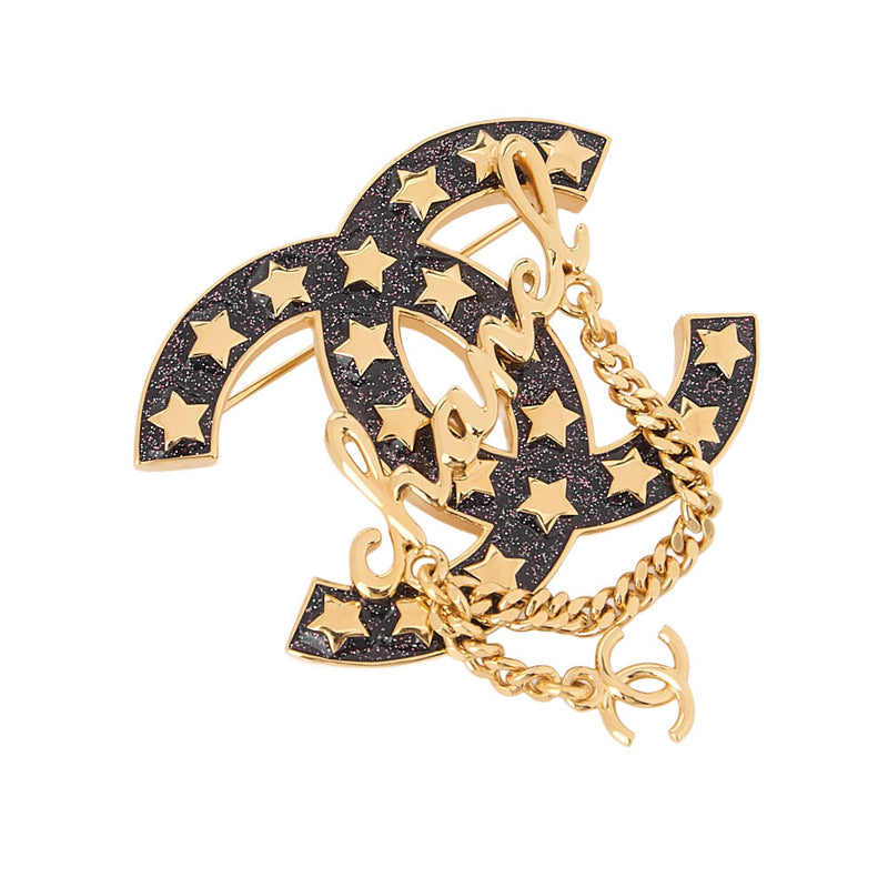 Pre-Owned CC Mark Star Lame Brooch Pin I24C Gold-Tone Hardware, Pre-Owned