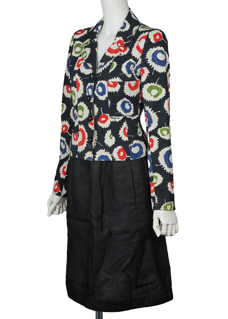 Gebrauchter Jackenrock-Aufbau, Farbmuster, Baumwolle, Schwarz, goldfarbene Metallteile, Gebraucht