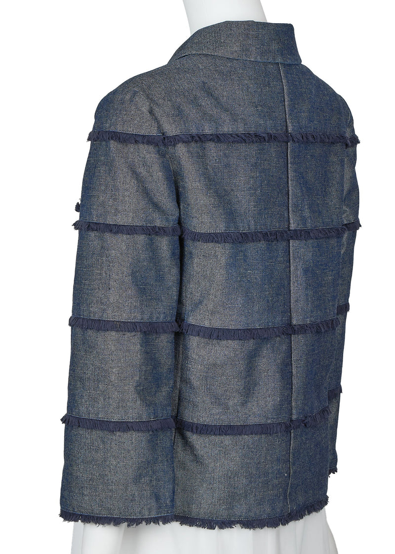 Gebrauchte Jacke, Tweed, ohne Kragen, Baumwollmischung, blau, silberfarbene Metallteile, gebraucht