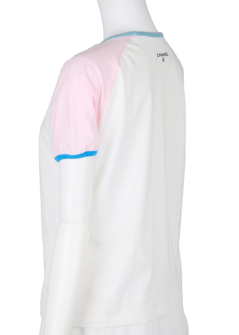 Gebrauchtes T-Shirt Cut and Sewn Kurzarm Baumwolle Pink Goldfarbene Hardware Gebraucht