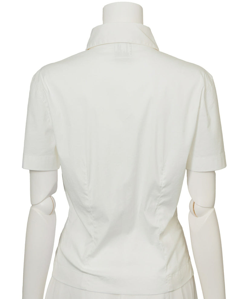 Gebrauchtes Kurzarmhemd, Bluse, T-Shirt, Coco Mark, Baumwollmischung, Weiß, silberfarbene Hardware, gebraucht