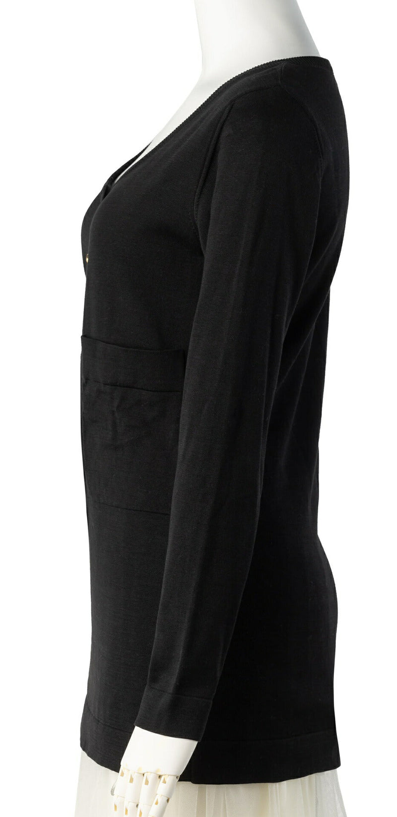 Gebrauchte Strickjacke, Coco Button, Langarm, Strick, Schwarz, Goldfarbene Hardware, Gebraucht