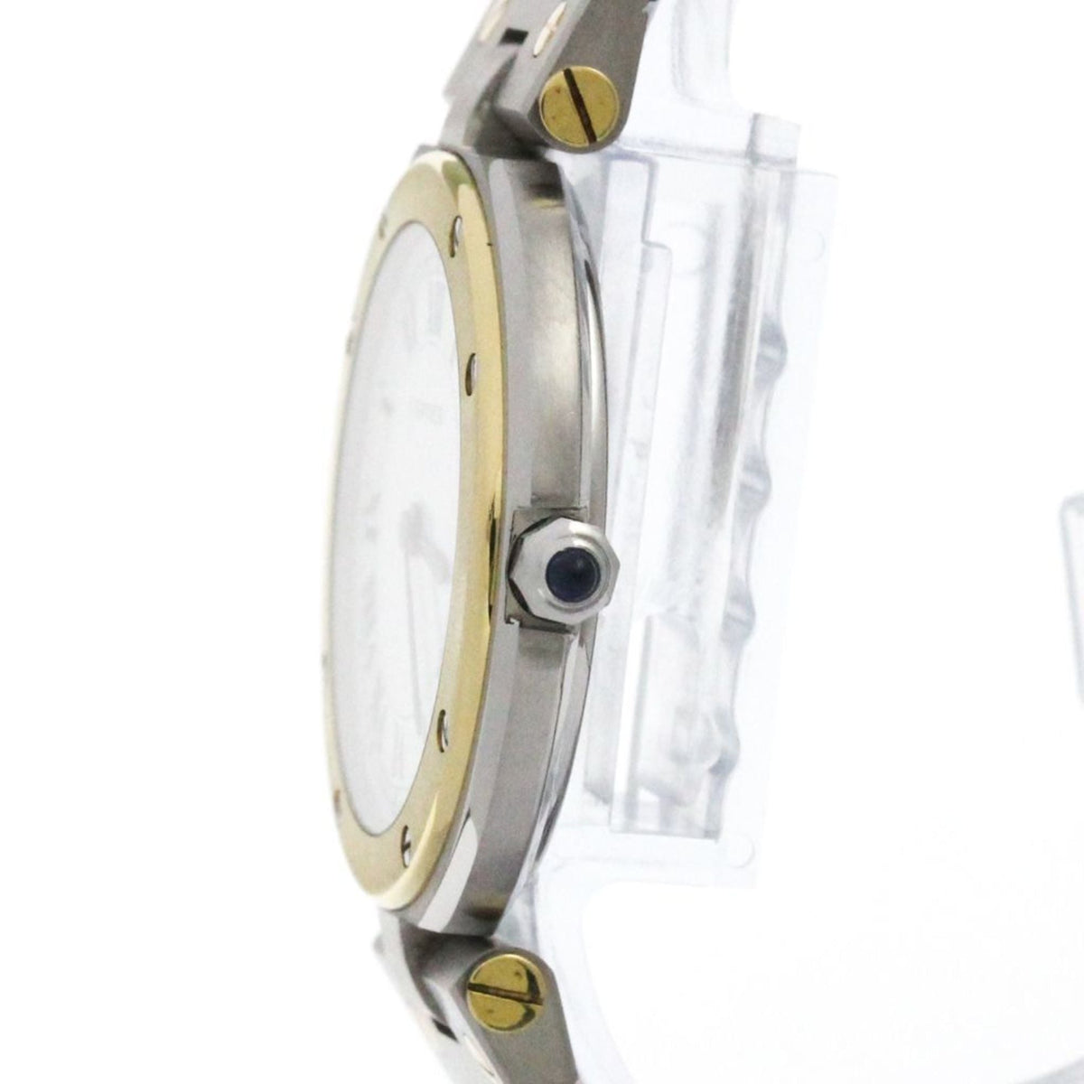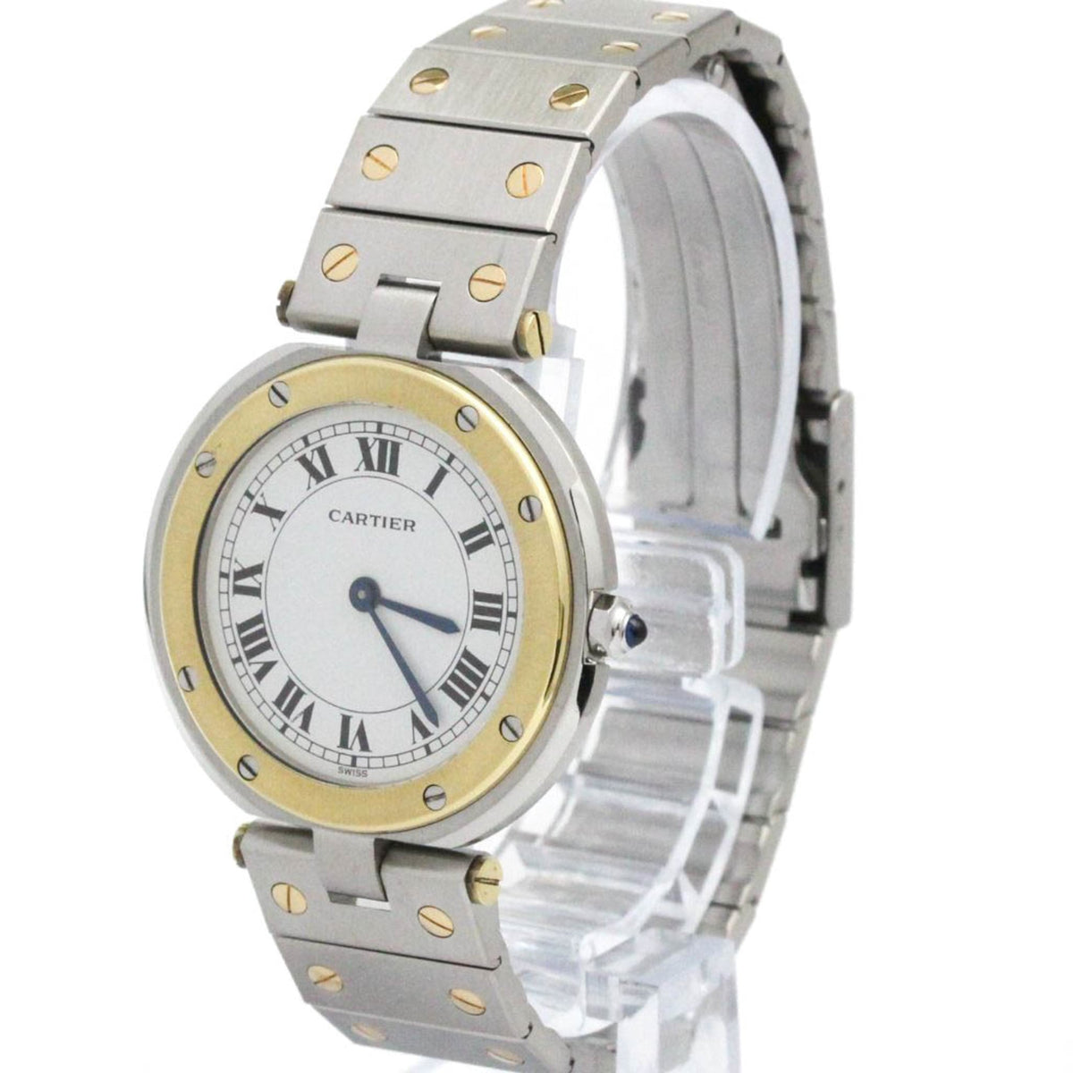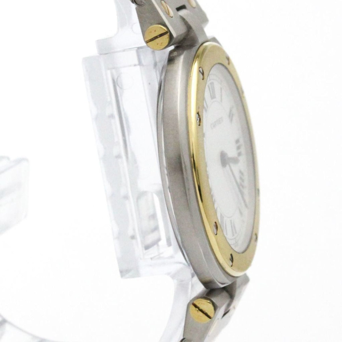 Pre-Owned CARTIER Santos Round 18K Gold Steel Quartz Mens Watch Polished