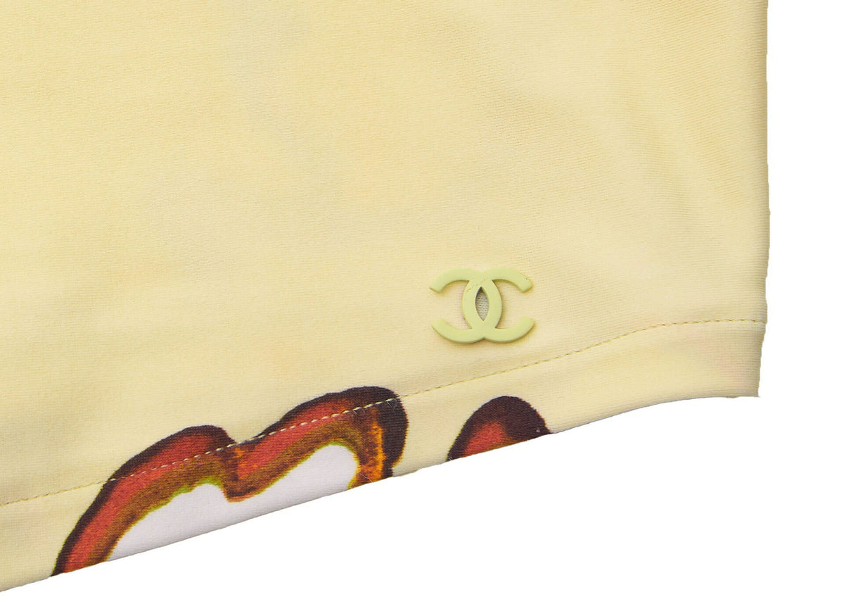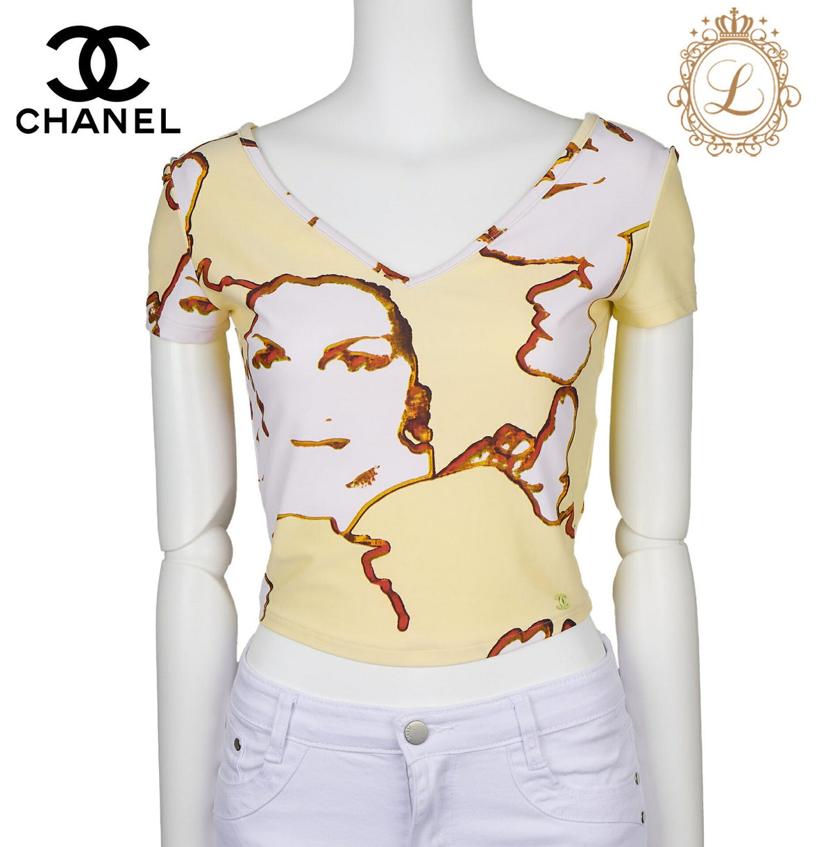 Werten Sie Ihre Garderobe mit dem CHANEL Coco Mark Total Pattern Kurzarm-Cut-and-Sew-Tops-T-Shirt in leuchtendem Gelb auf. Dieses T-Shirt strahlt Luxus und Stil aus und ist ein Must-have für Modebegeisterte, die Komfort mit Eleganz verbinden möchten.