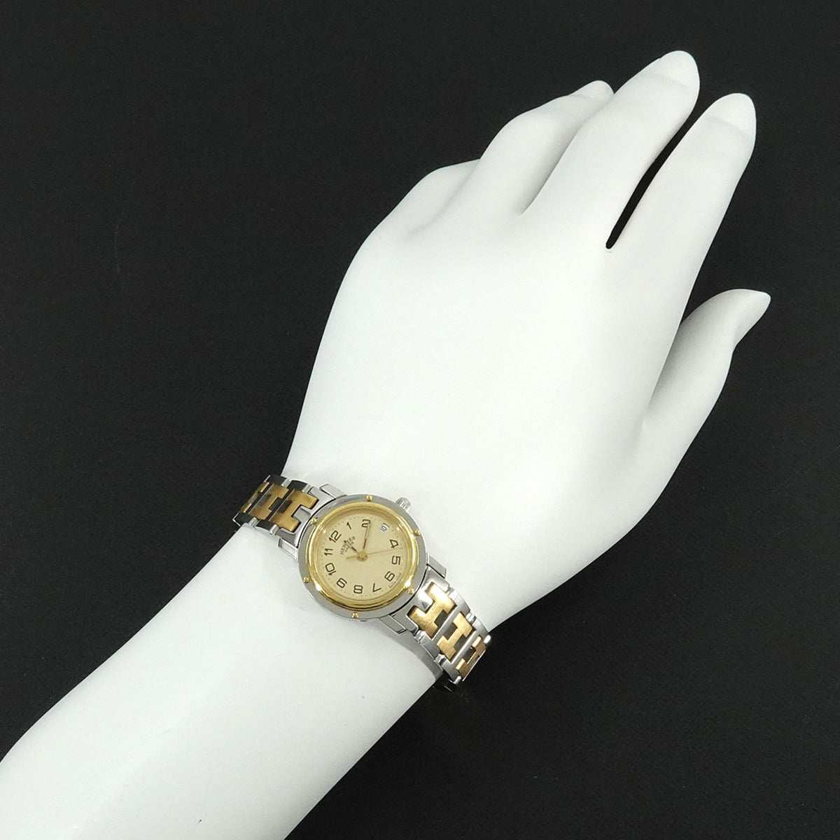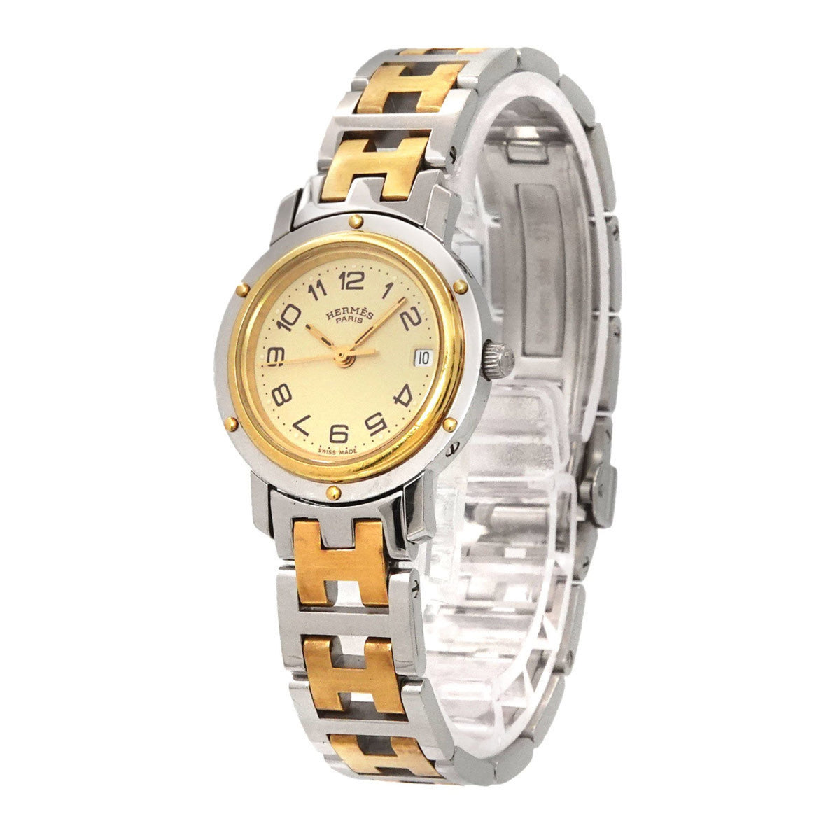 Pre-Owned Herm?s Clipper CL4 220 Women's Ivory Quartz Watch with Date Display, Two-Tone