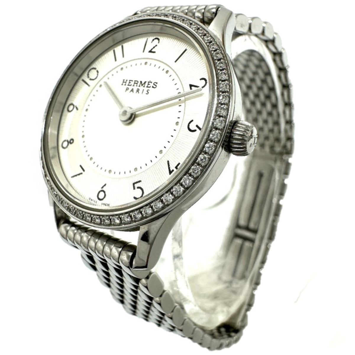 Gebrauchte Hermes CA2.130 Diamant Lünette Quarz Armbanduhr Silber