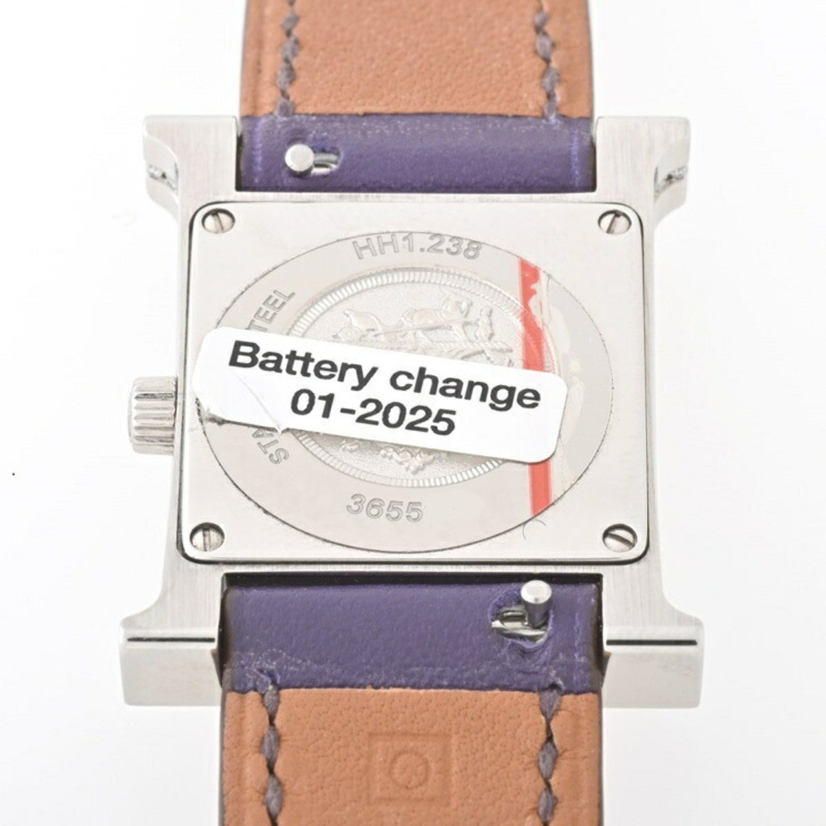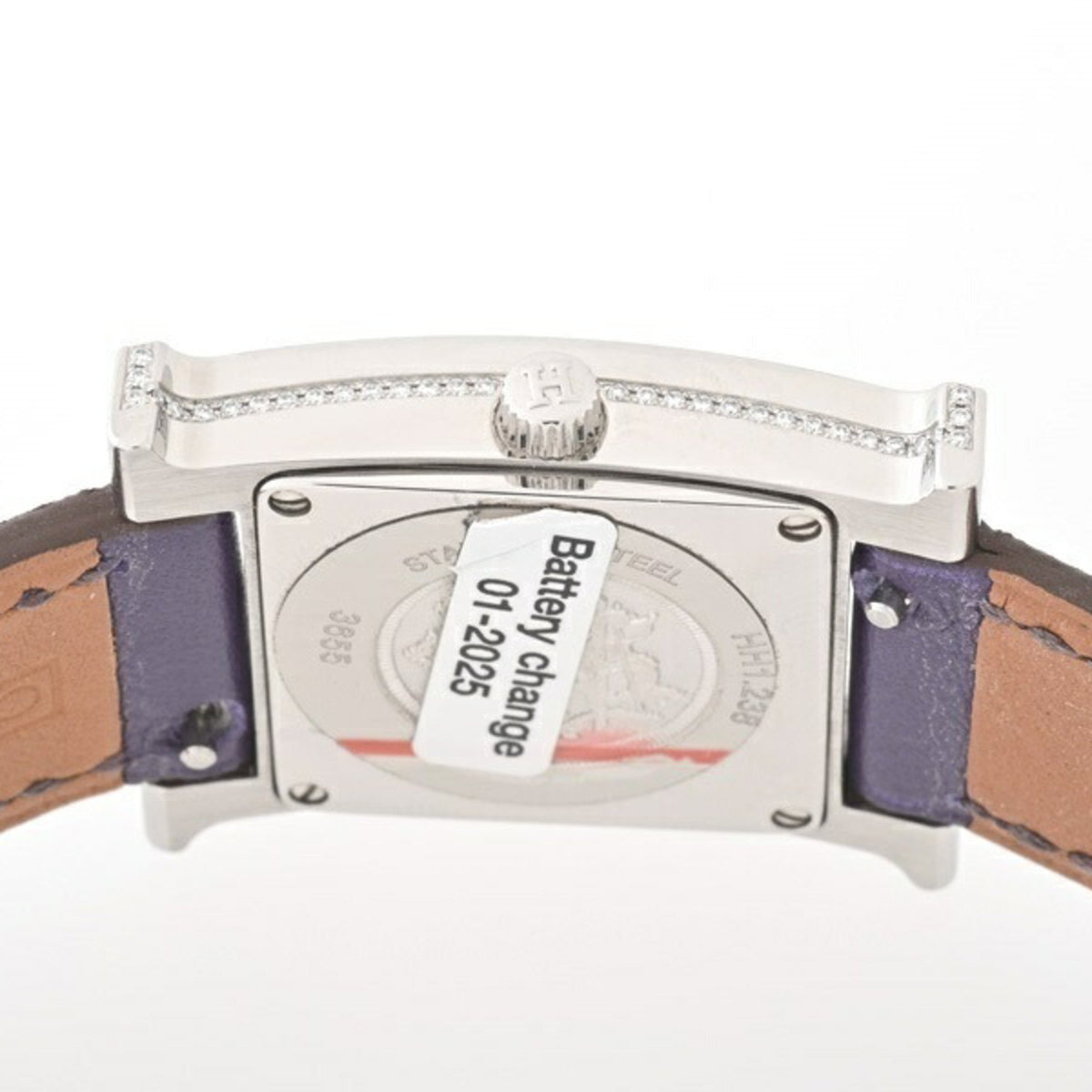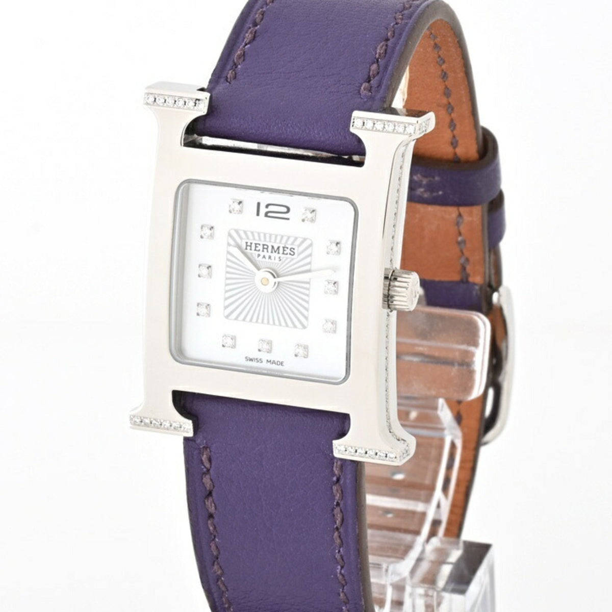 Gebrauchte Hermes HERMES H Uhr PM 25mm HH1.238 Shell White Quartz Armbanduhr Bandanstoß und Gehäuseseite Diamanten E-156583