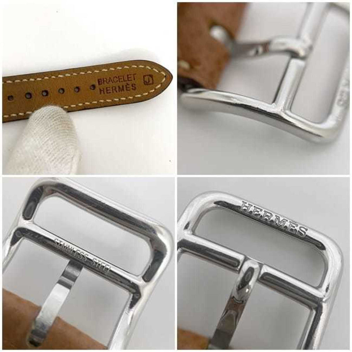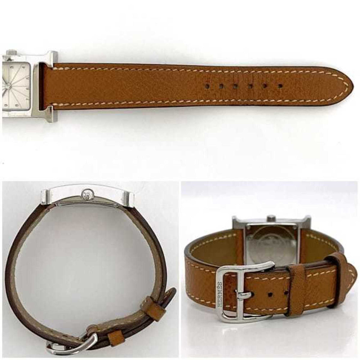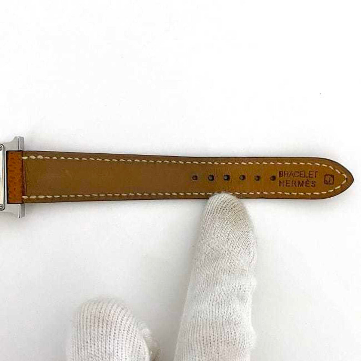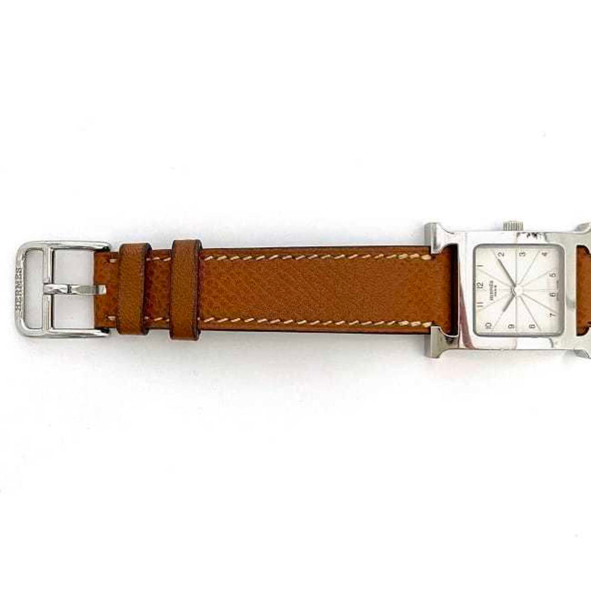 Gebrauchte Hermes Uhr H Beige Silber Braun HH1.210 Damen SS Leder Quarz J Stempel HERMES Batteriebetrieben 21mm