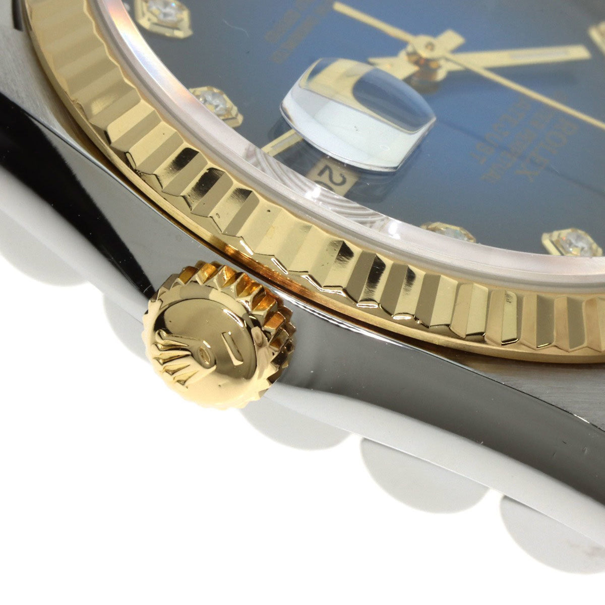 Pre-Owned Rolex 16233G Datejust 10P Diamond Blue Gradient Stainless Steel Watch, SSx18KYG, 18KYG, Men's