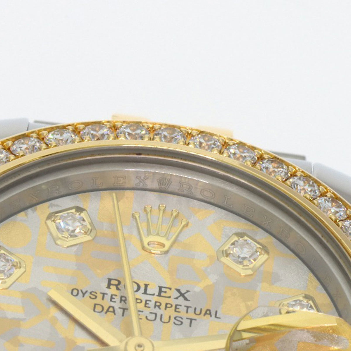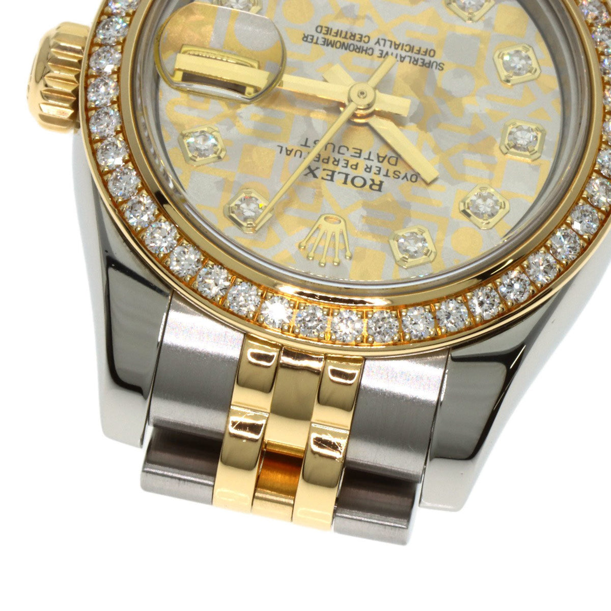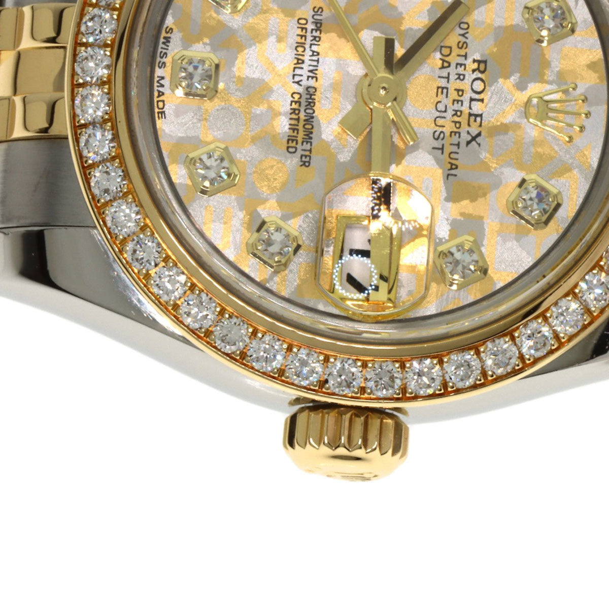 Pre-Owned Rolex 179383G Datejust with 10 Diamond Bezels and Gold Crystals, Stainless Steel Watch in 18K Yellow Gold, for Women