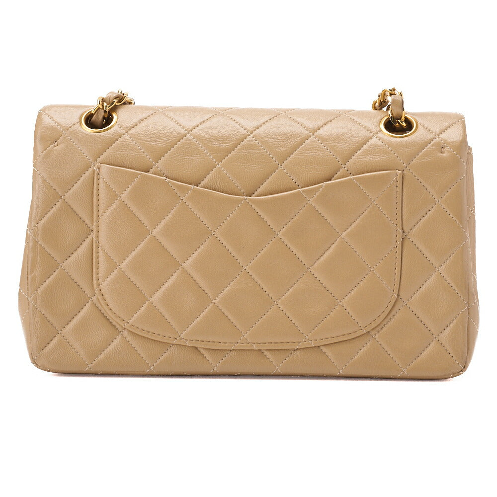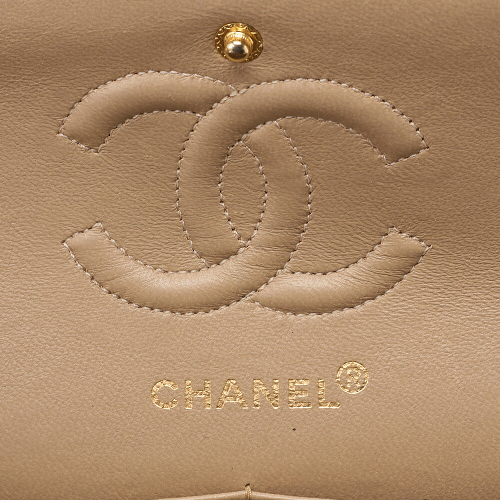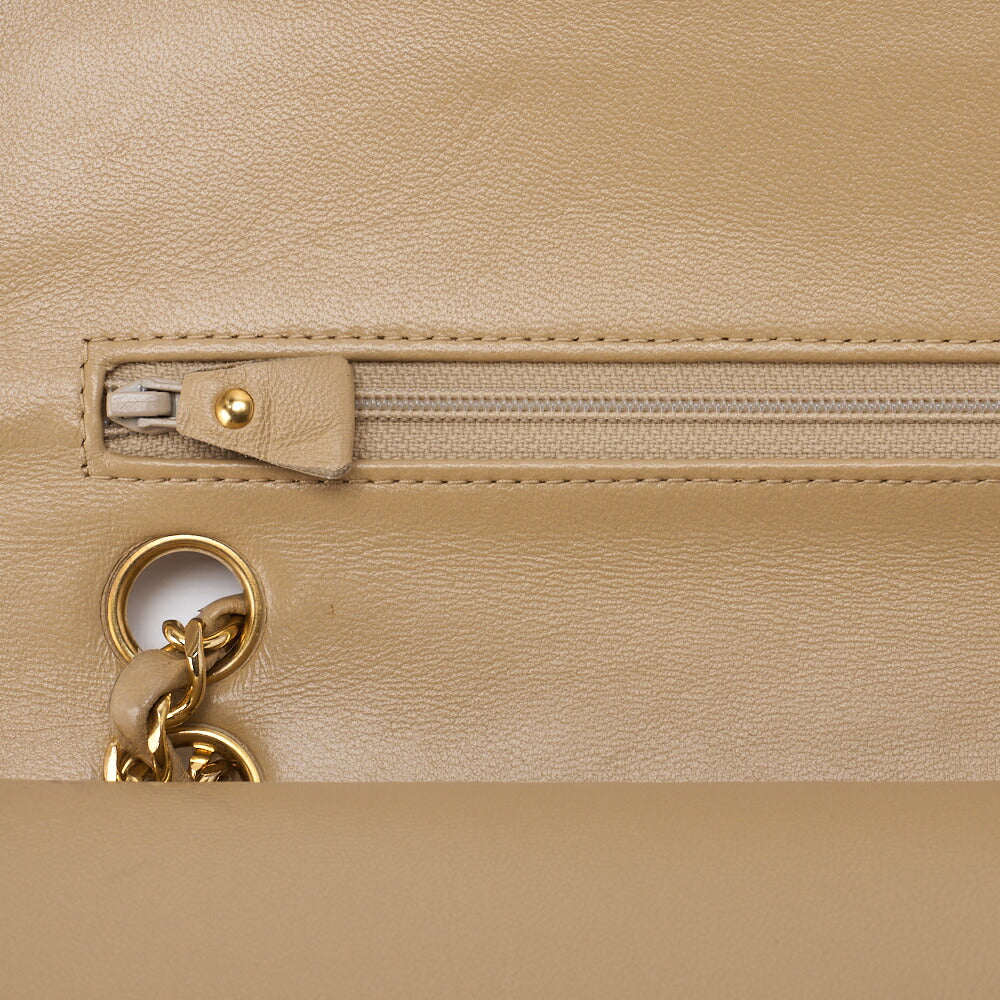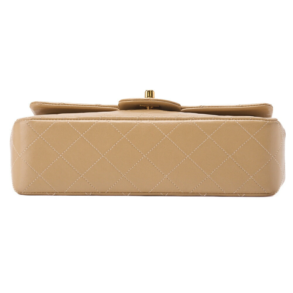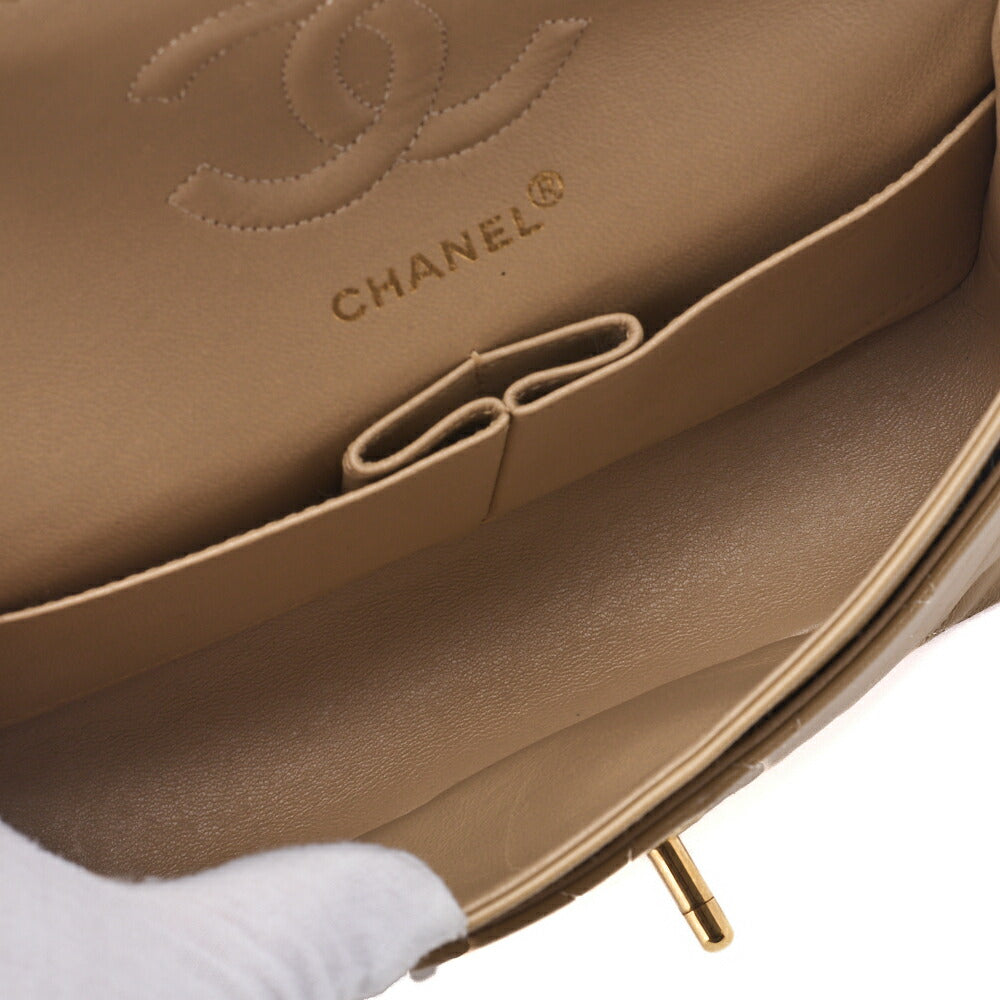 Pre-Owned Schultertasche Matelassé Doppelklappe Lammleder Beige Goldfarbene Hardware Pre-Owned