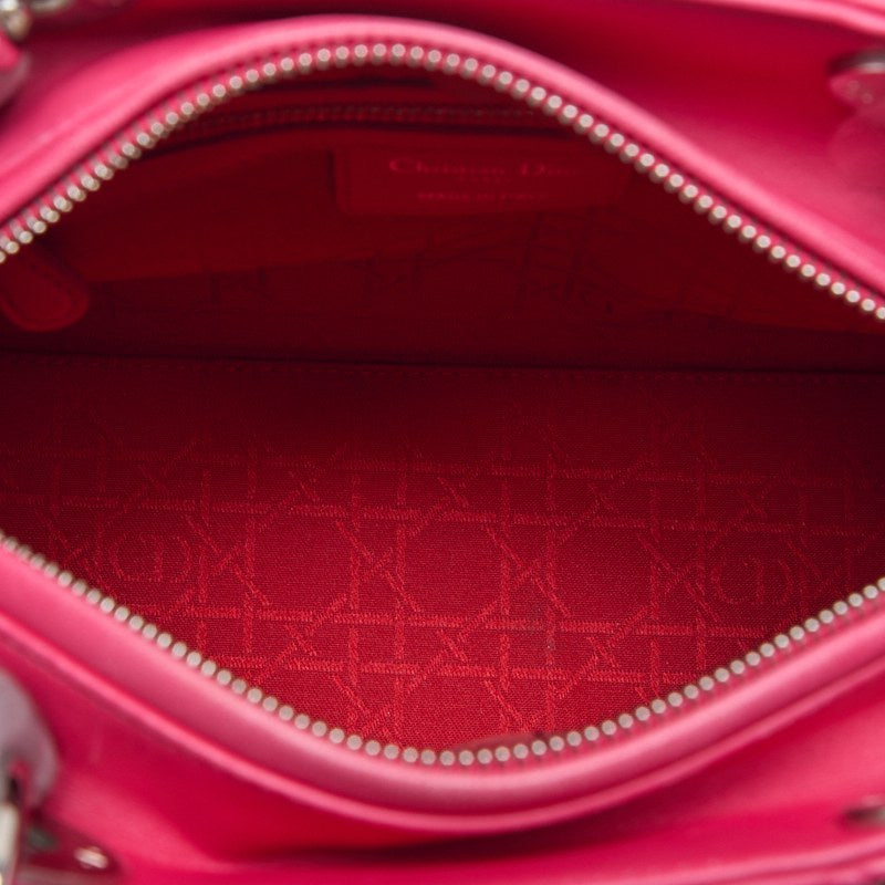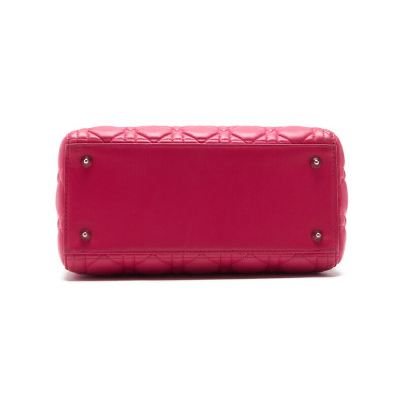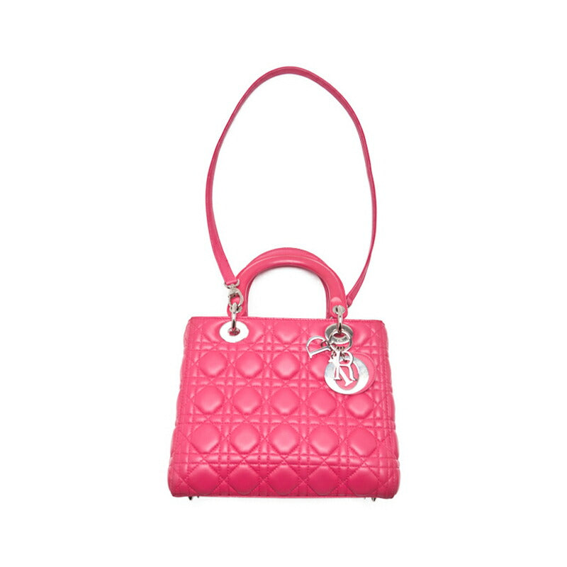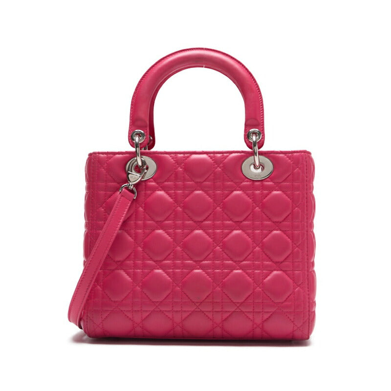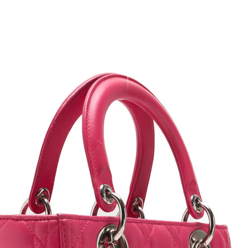 Sac à main Lady Cannage 2 voies d'occasion en cuir d'agneau rose avec finitions argentées.