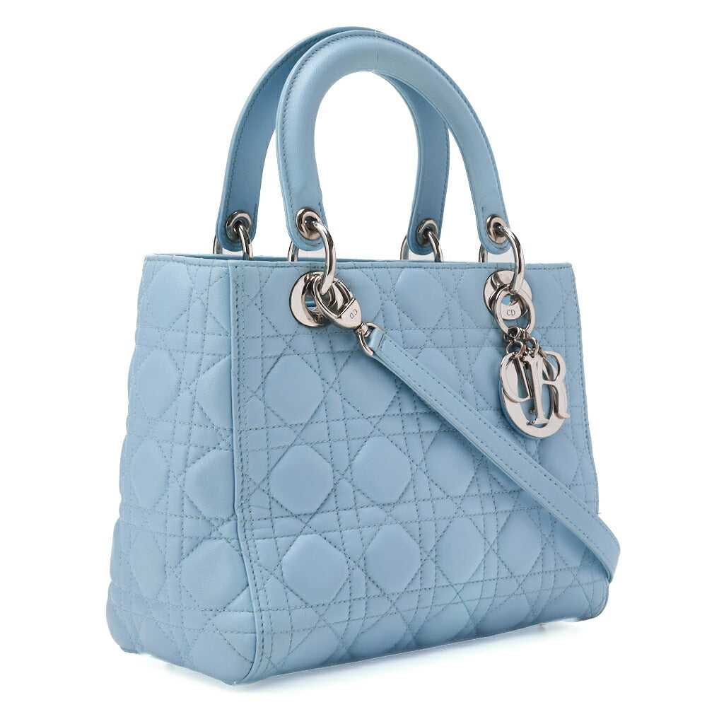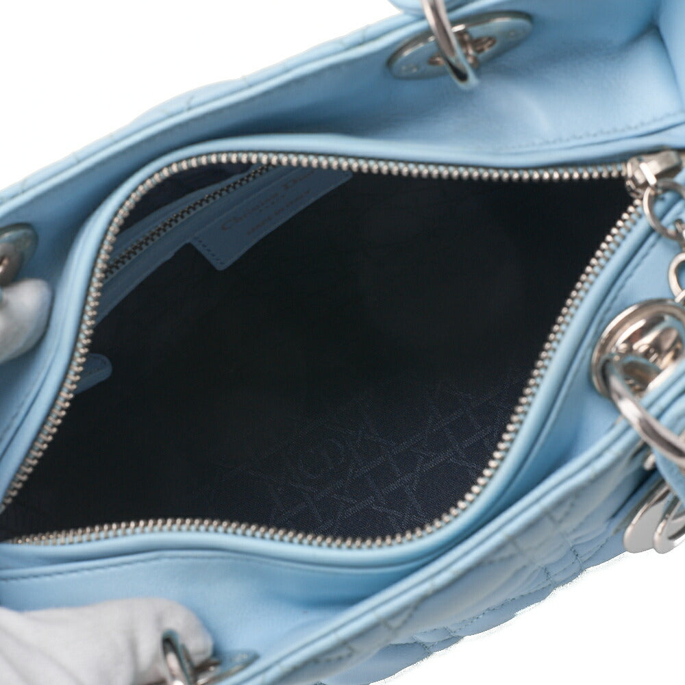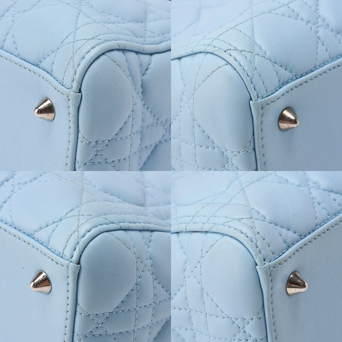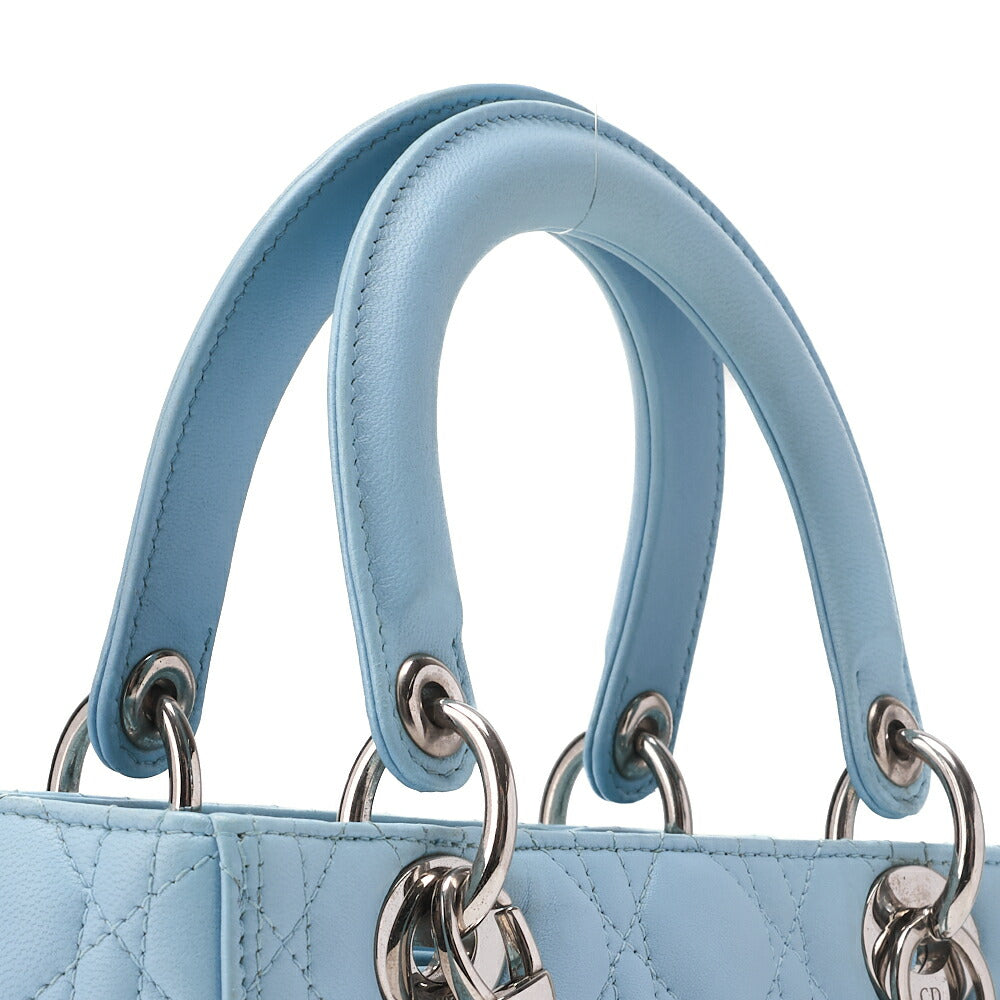 Sac à main Lady Cannage 2WAY d'occasion en cuir d'agneau bleu clair et finitions argentées.
