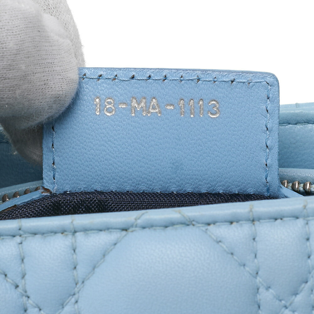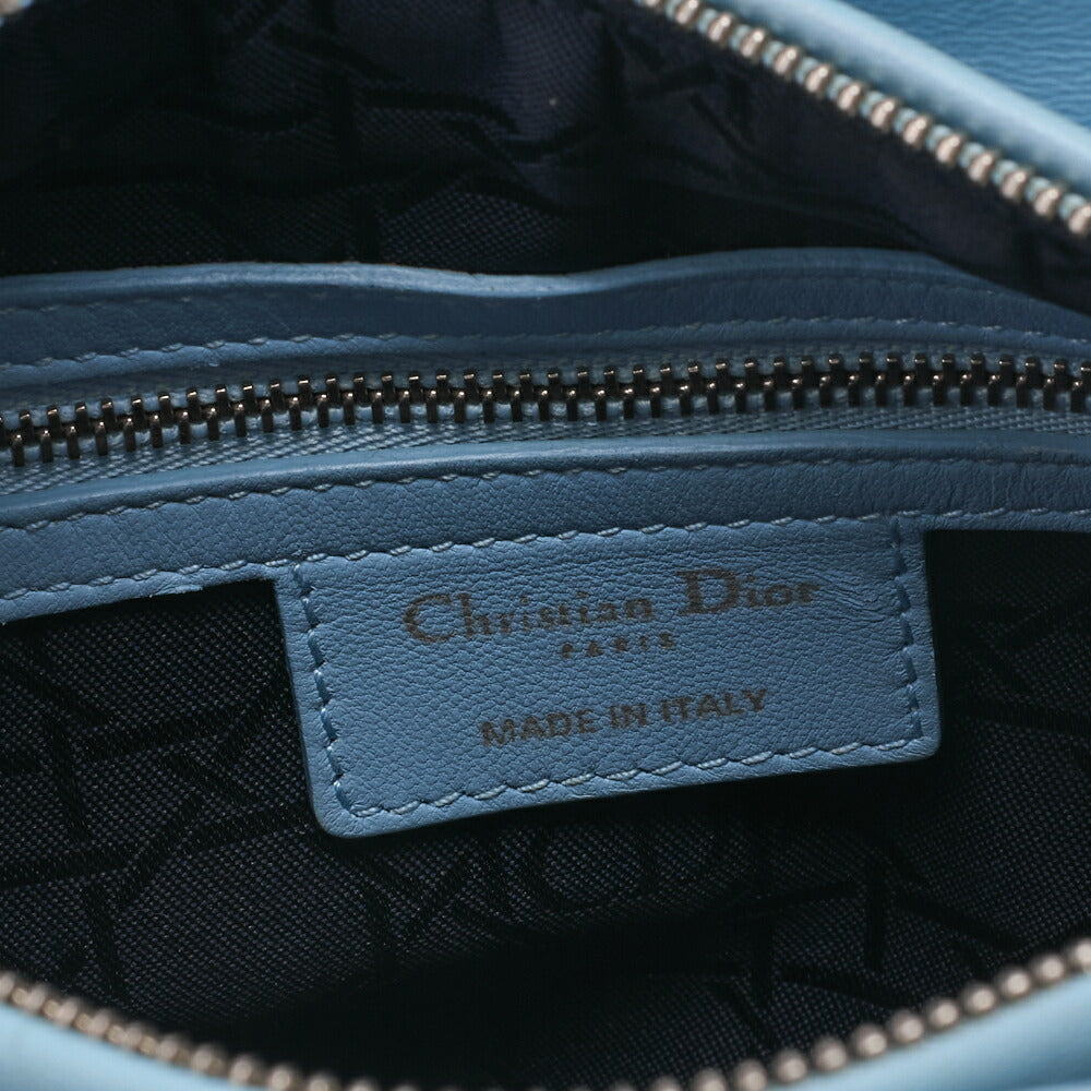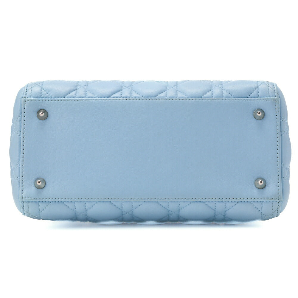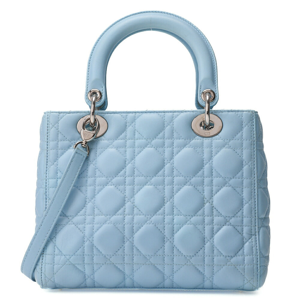 Sac à main Lady Cannage 2WAY d'occasion en cuir d'agneau bleu clair et finitions argentées.