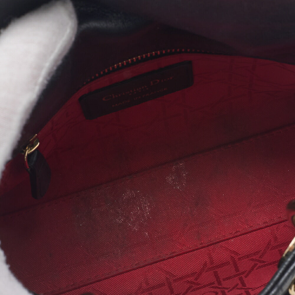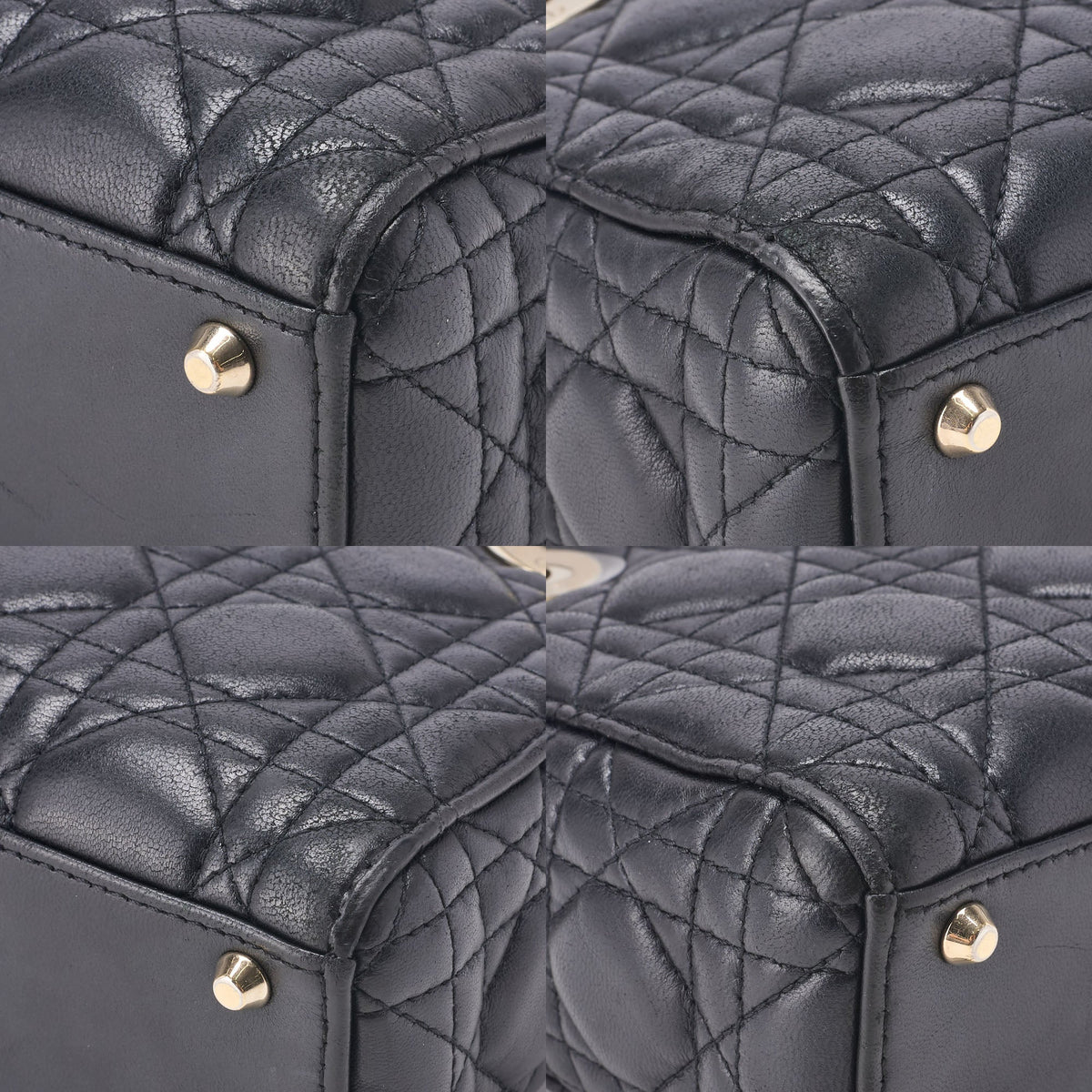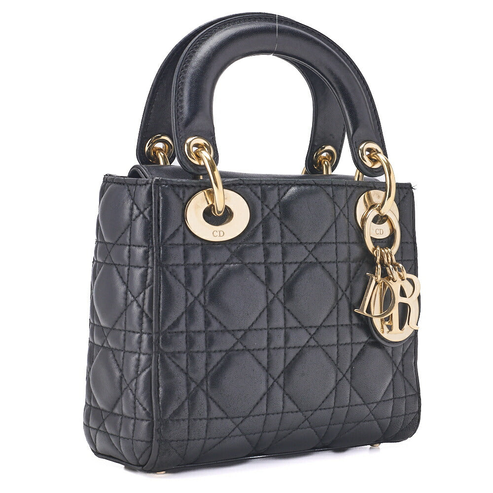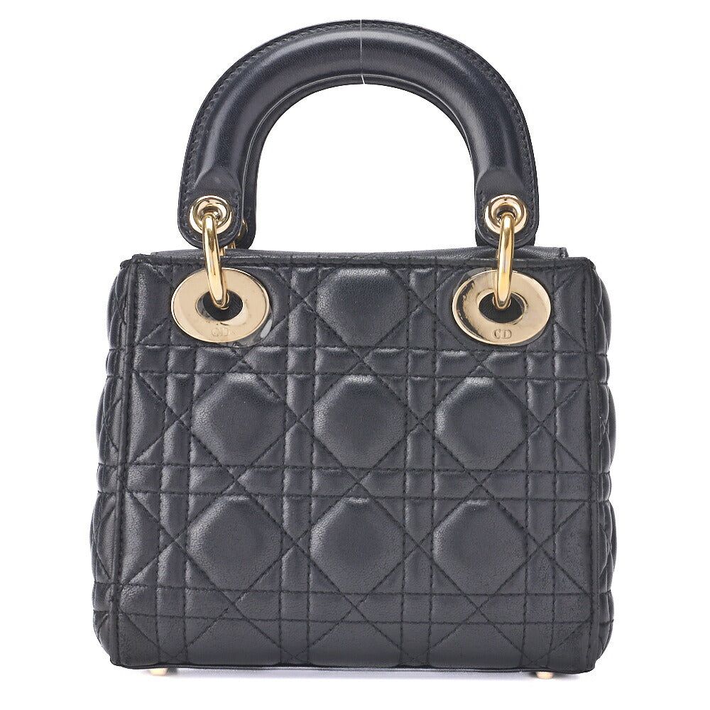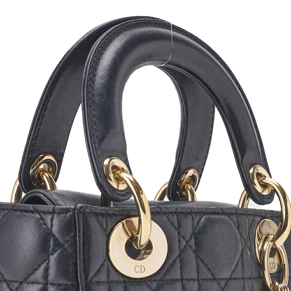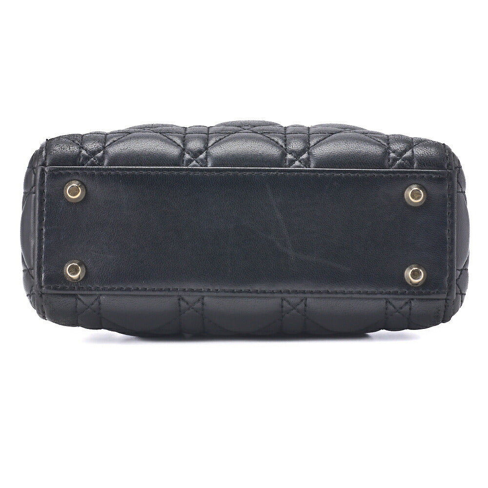 Sac à main Mini Lady Cannage d'occasion en cuir d'agneau noir et métal doré.