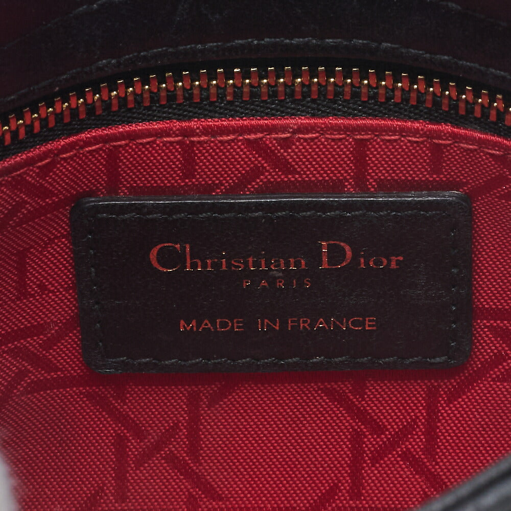 Sublimez votre collection d'accessoires avec le sac à main Dior Mini Lady Dior Cannage en luxueux cuir d'agneau noir, rehaussé de superbes finitions dorées. Ce sac raffiné allie harmonieusement sophistication et praticité, un incontournable pour la femme moderne.