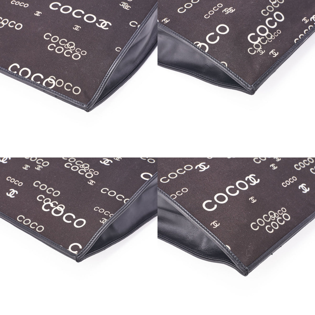 Sac à main d'occasion en coton noir à motif Coco, finitions dorées.