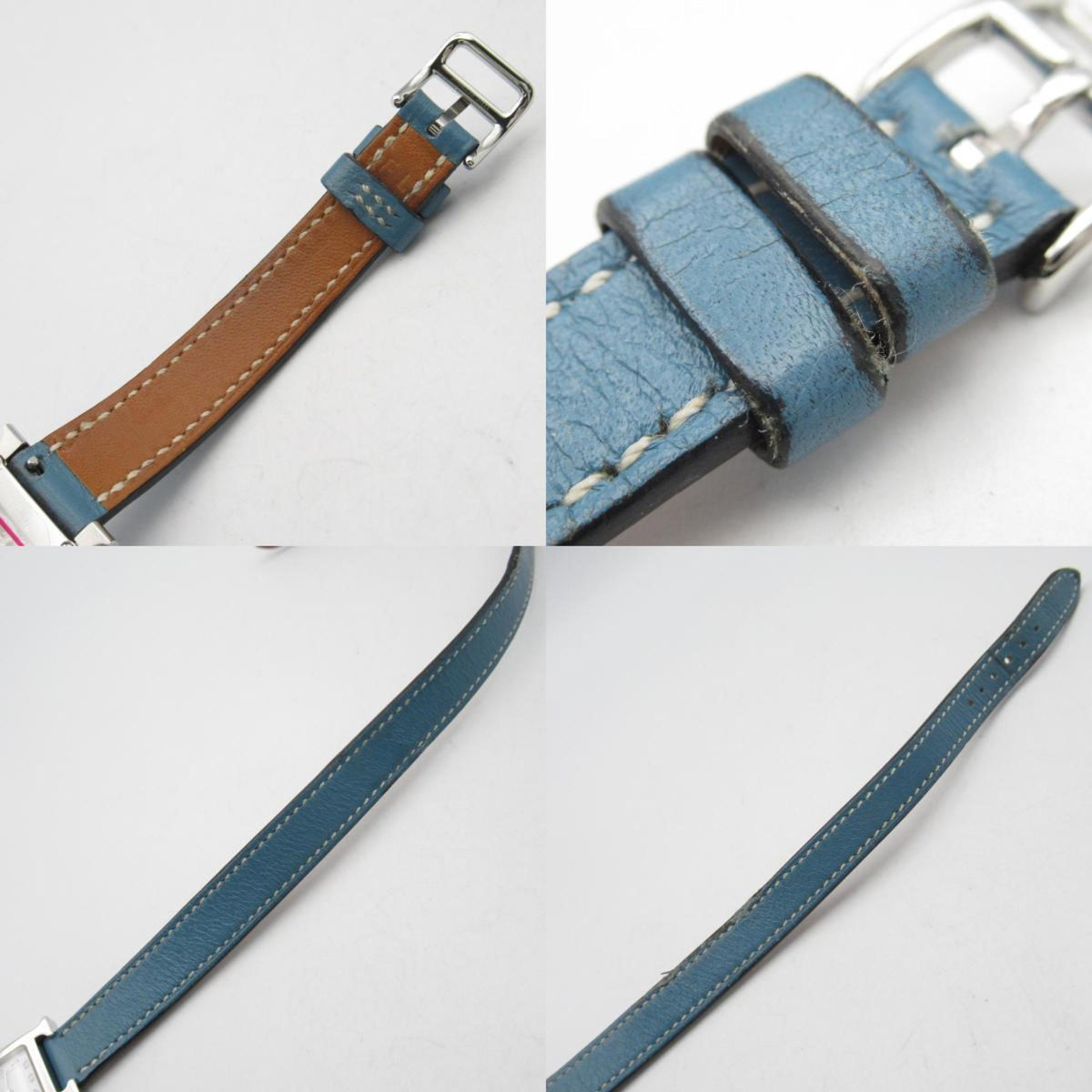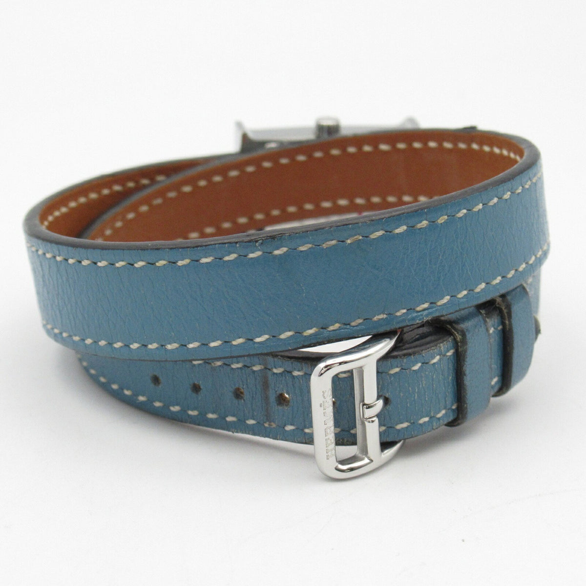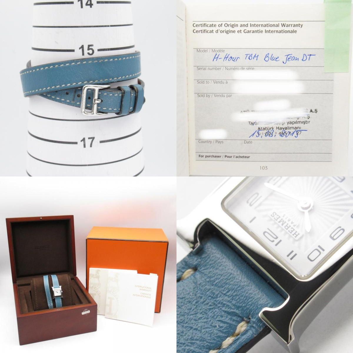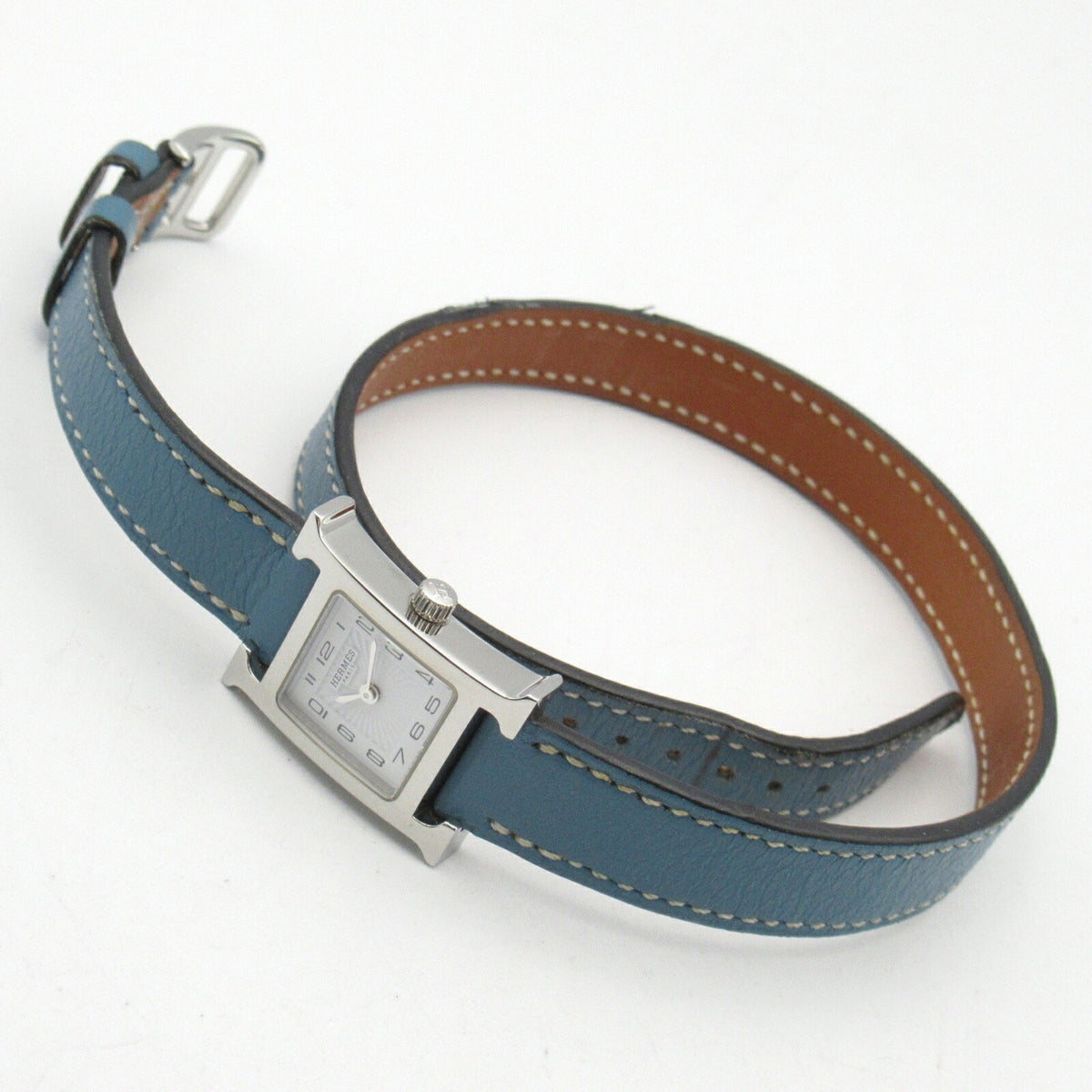 Montre-bracelet Hermes H Mini Double Tour d'occasion pour femme, bracelet en acier inoxydable et cuir, blanche HH1.110