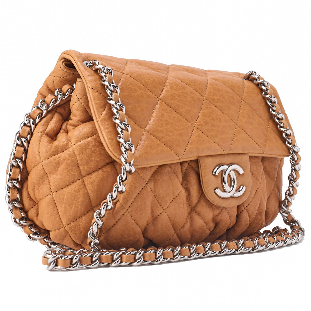 Sac bandoulière Matlasse de luxe en cuir d'agneau beige, chaîne et détails argentés, d'occasion