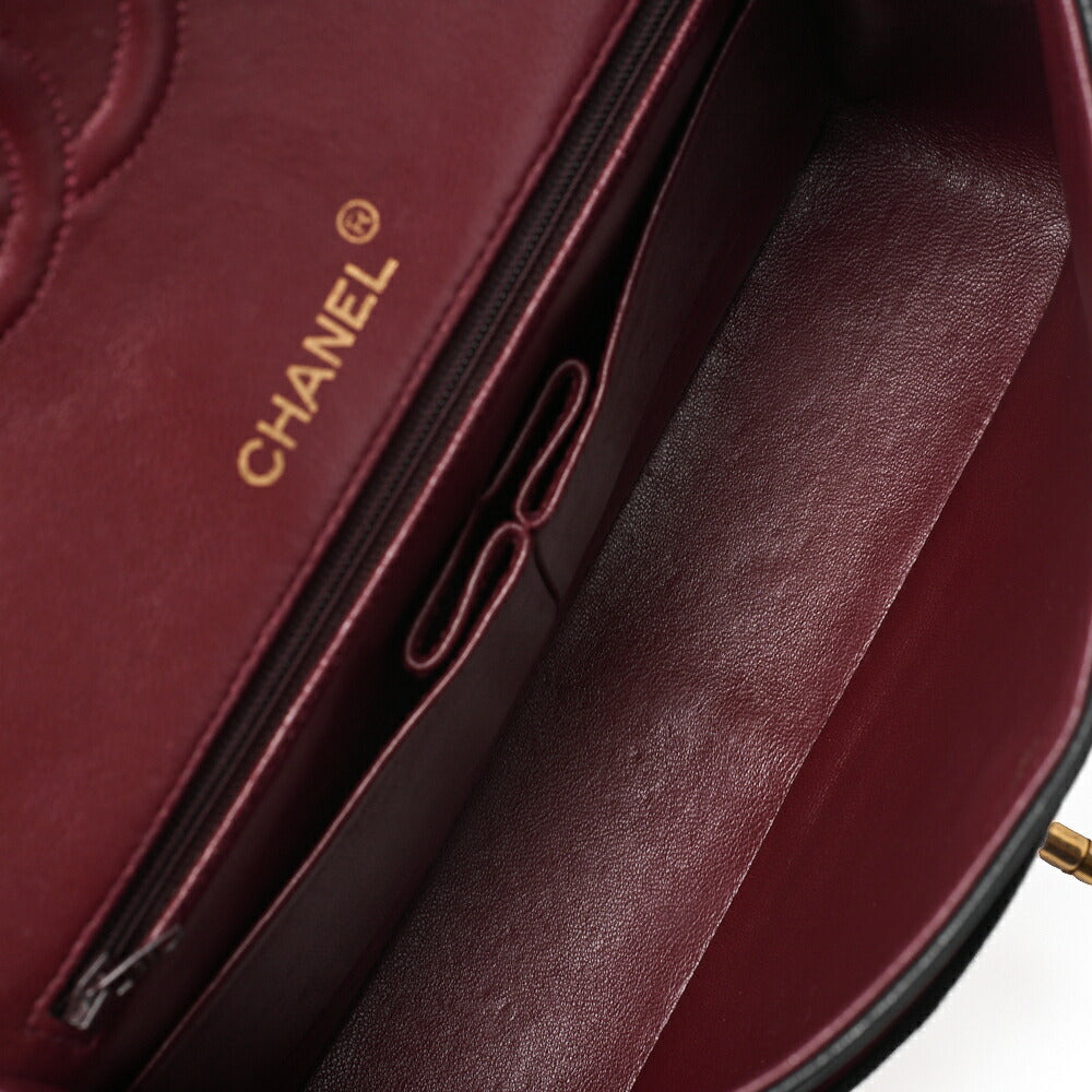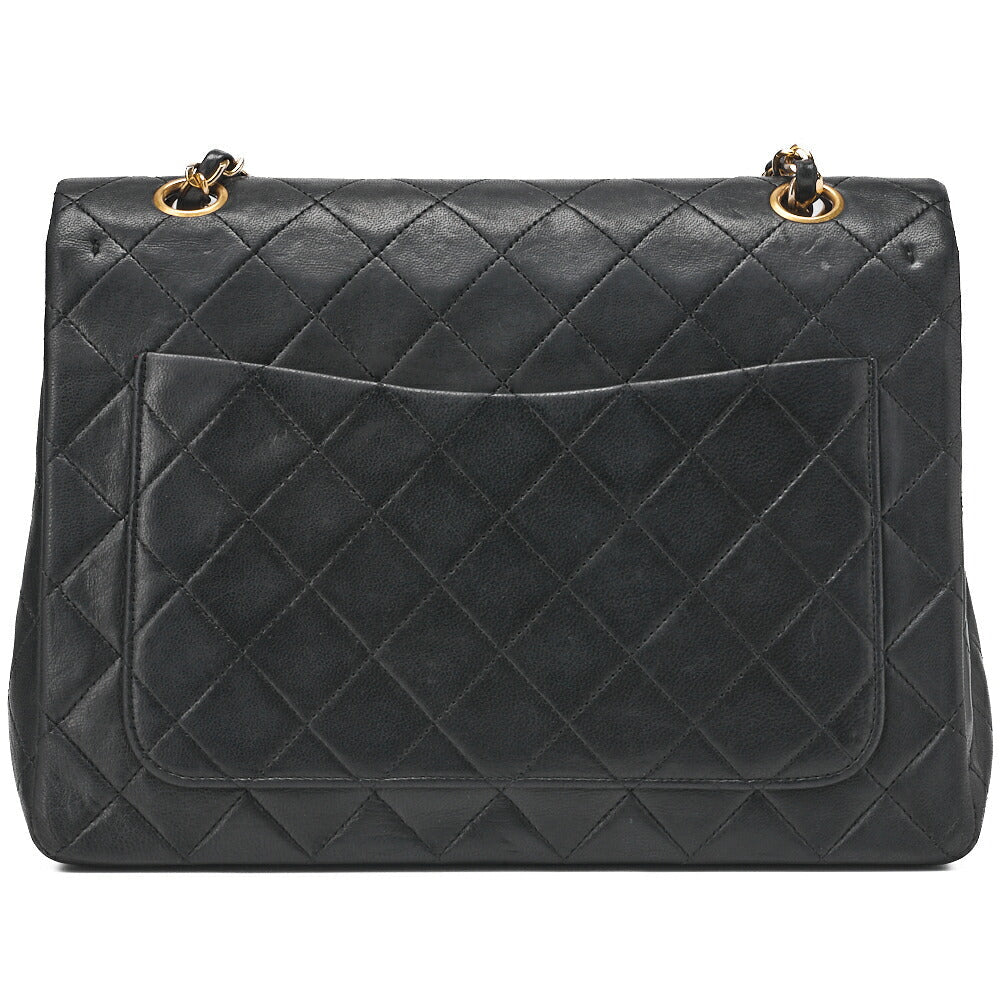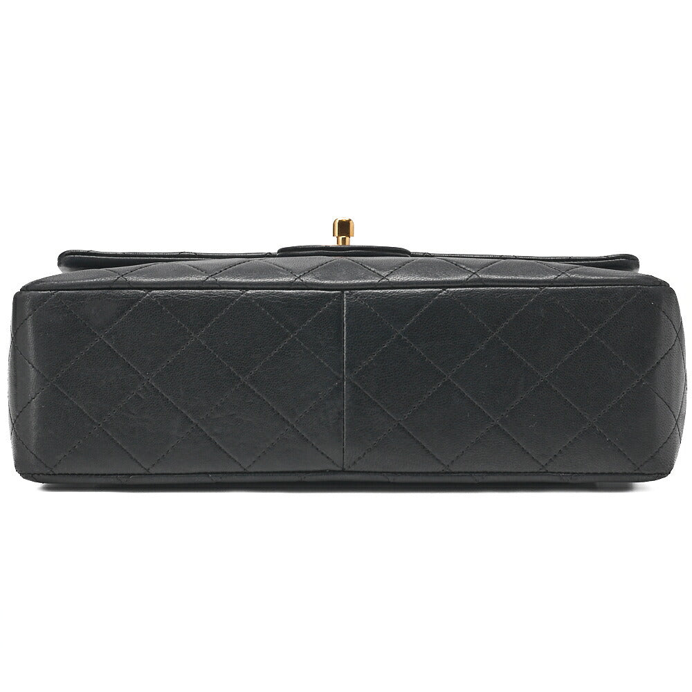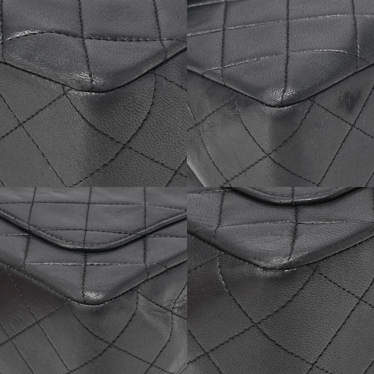 Sac à bandoulière Matlassse à double rabat et chaîne, en cuir d'agneau noir et métal doré, d'occasion