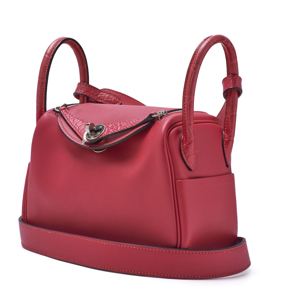 Découvrez le sac bandoulière Hermès Mini Lindy 18 2 voies, confectionné en luxueux cuir de crocodile Swift dans une superbe teinte Rose Shocking , rehaussé d'élégantes finitions argentées. Ce sac bandoulière raffiné est parfait pour la femme moderne qui apprécie à la fois style et fonctionnalité.