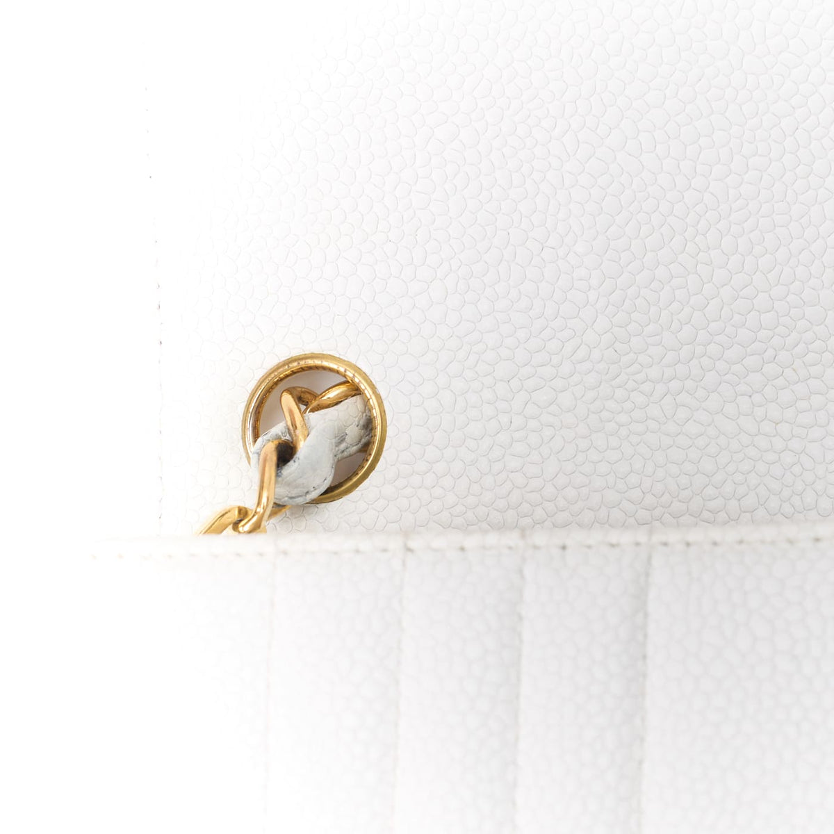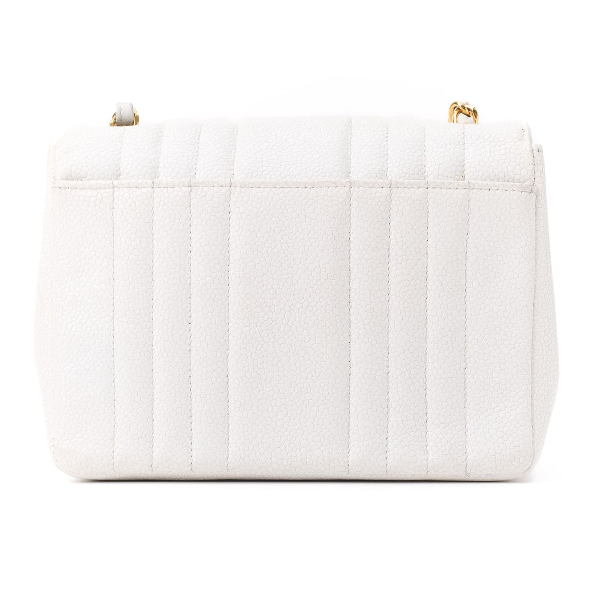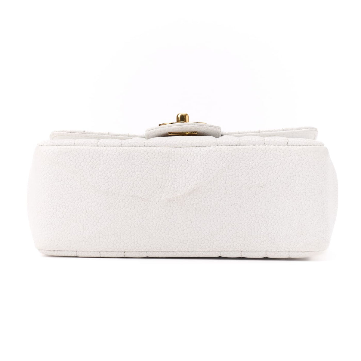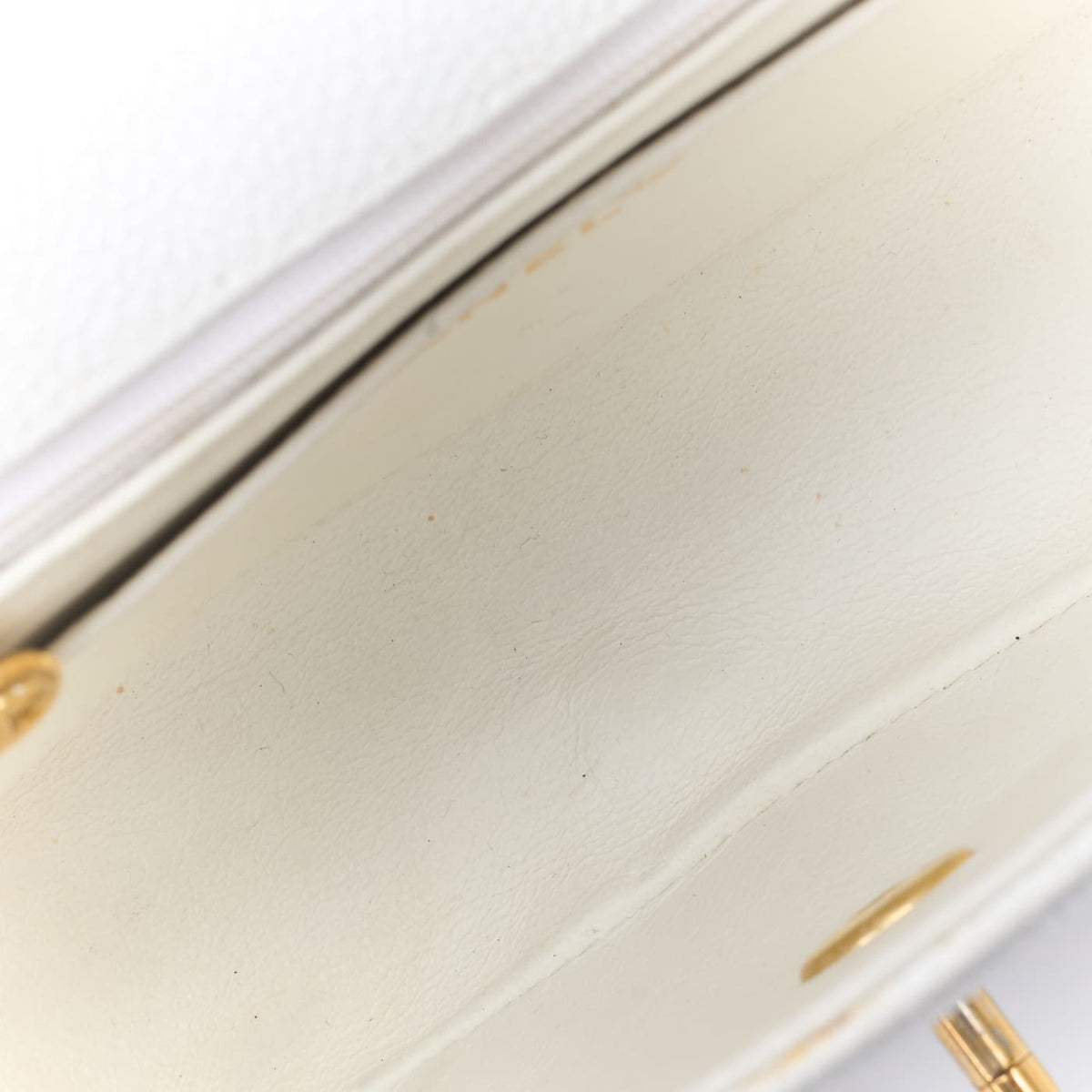 Mini sac à bandoulière Mademoiselle d'occasion avec chaîne et fermoir tournant, cuir caviar, finitions dorées blanches.