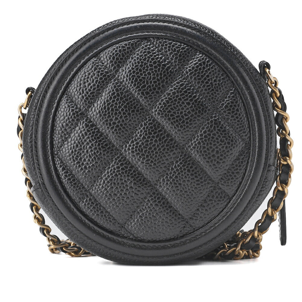 Mini sac bandoulière matelassé Coco Mark CC en cuir caviar filigrané noir et métal doré d'occasion