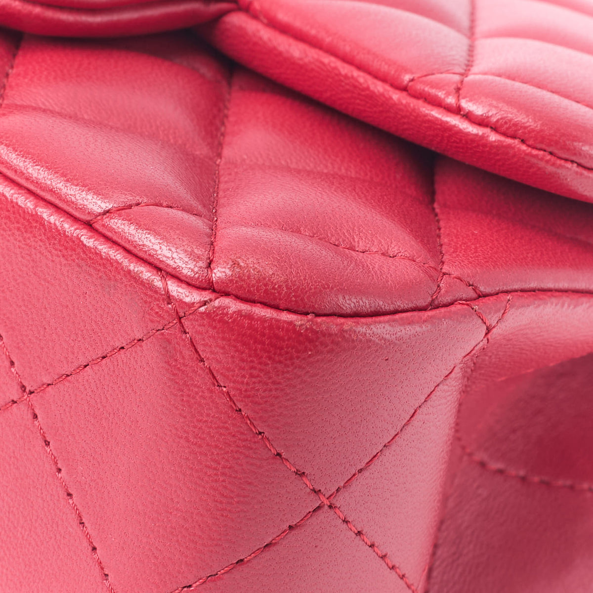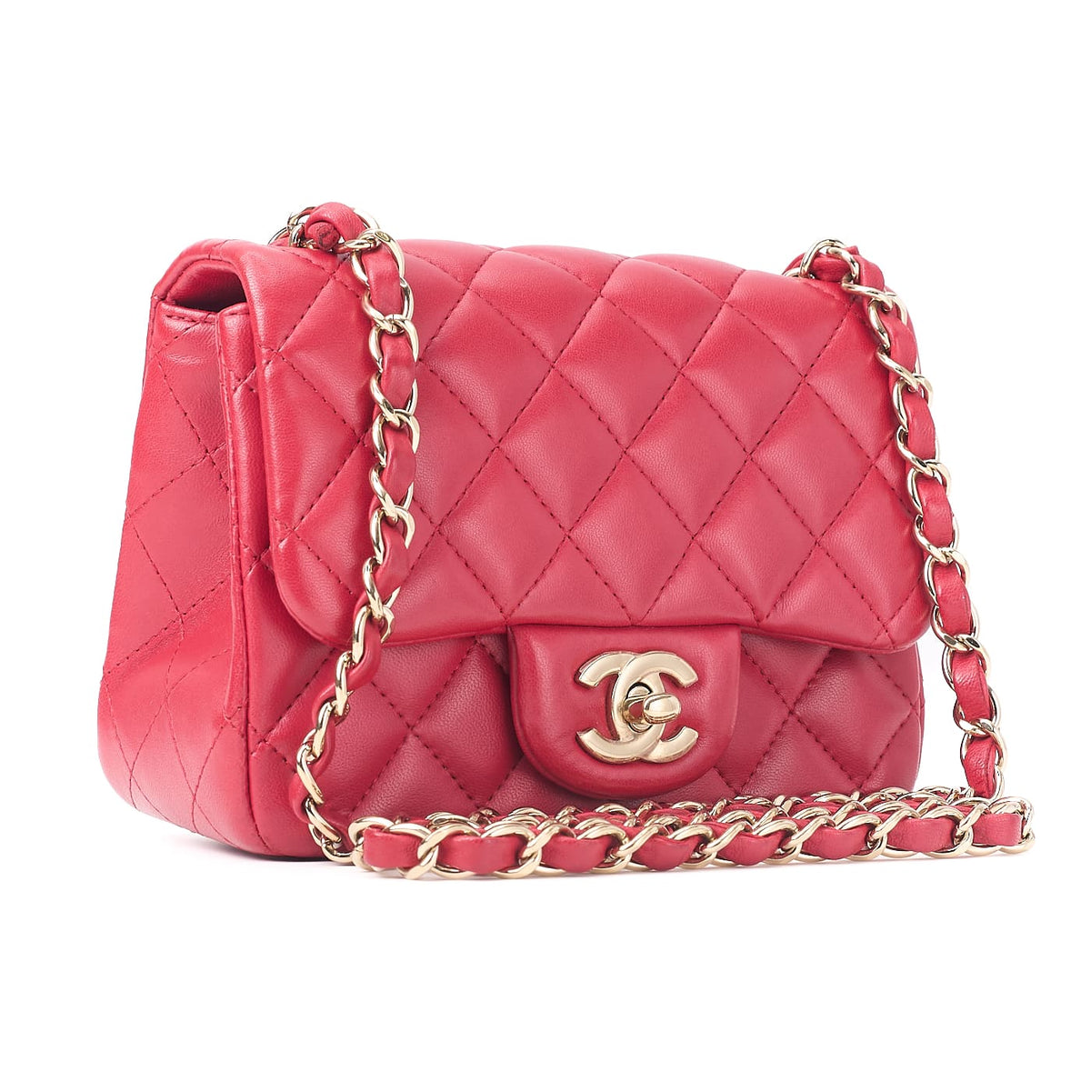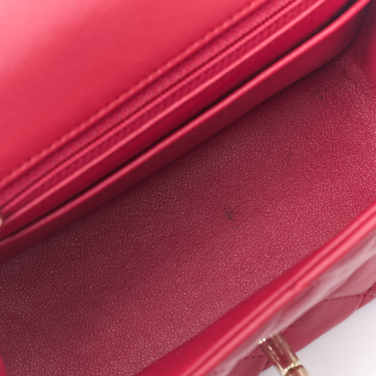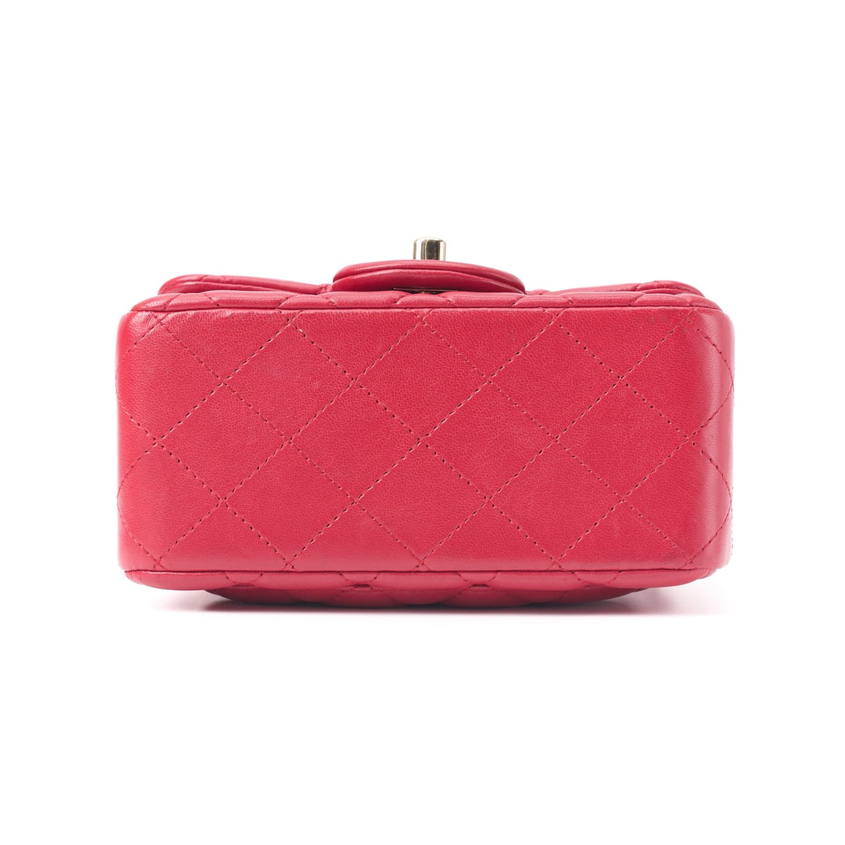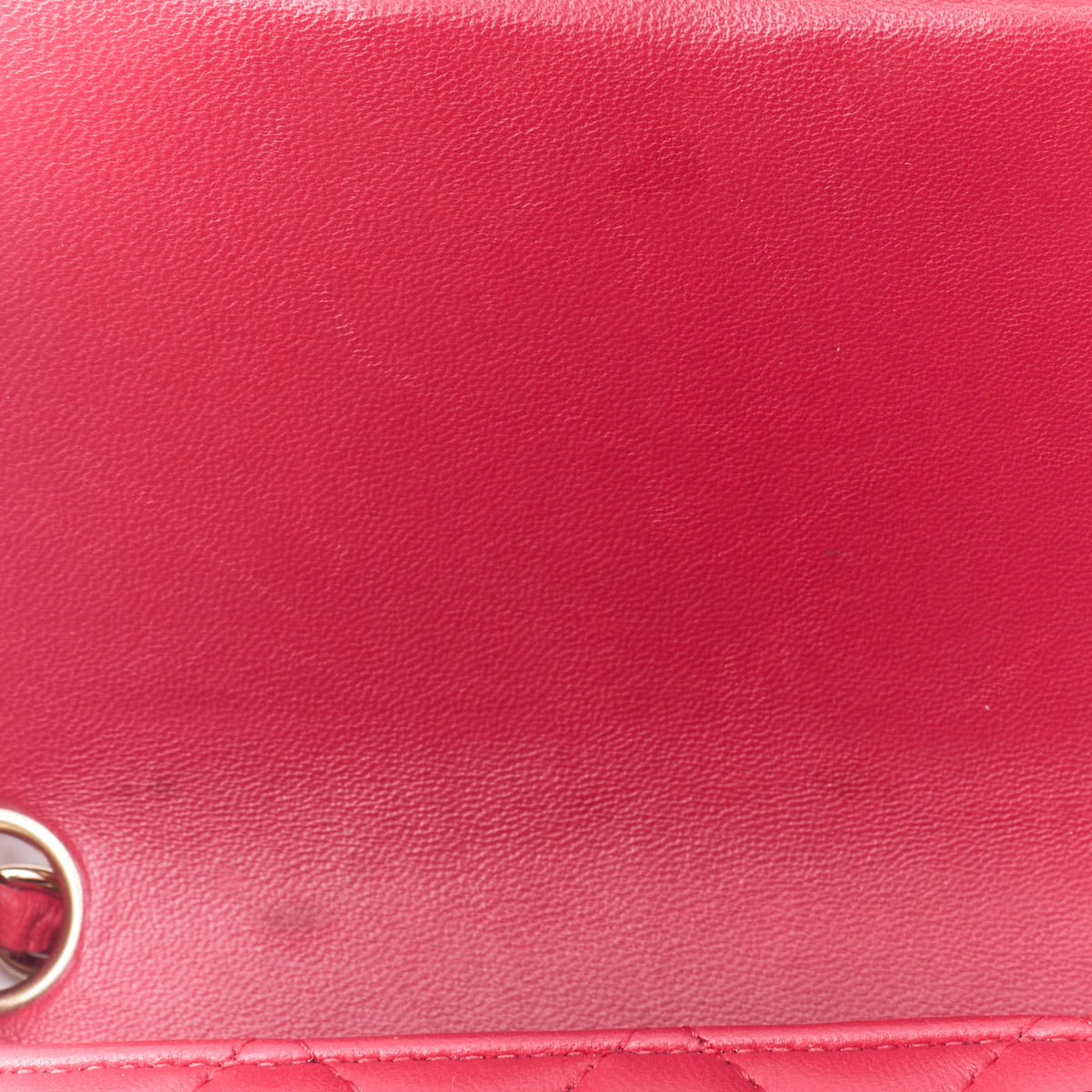 Mini sac bandoulière d'occasion, matelassé, fermoir pivotant, cuir d'agneau, rouge, finitions dorées.