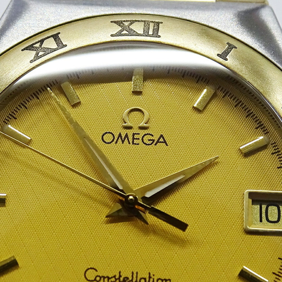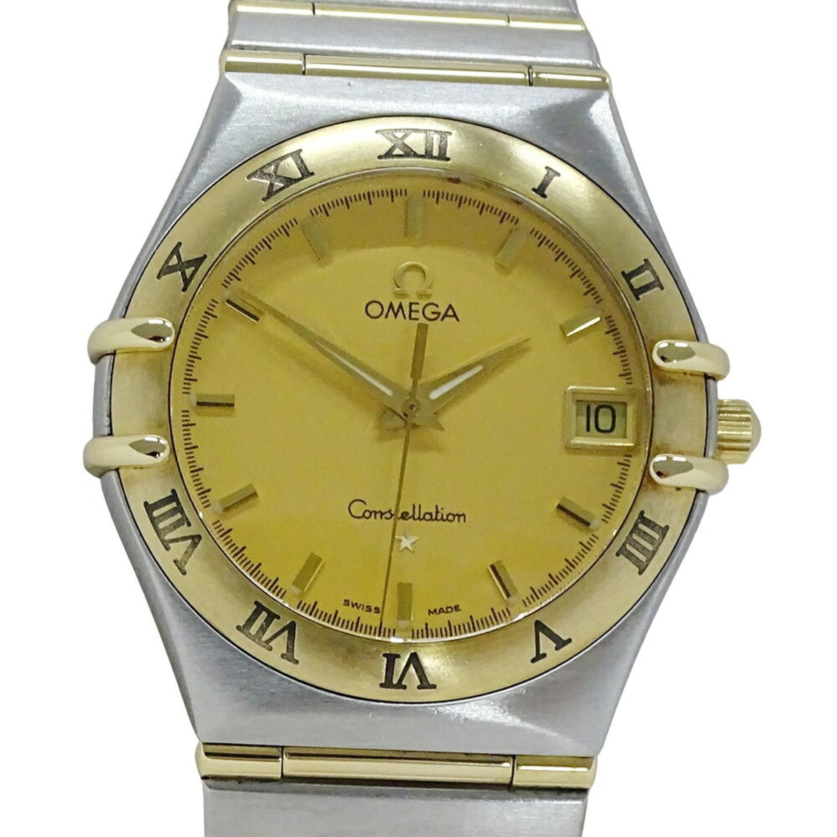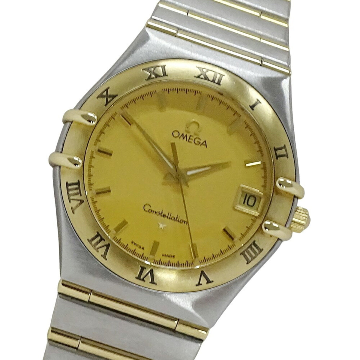 Montre Omega Constellation 1212.10 d'occasion pour homme, date, quartz, acier inoxydable, or jaune, barre complète polie