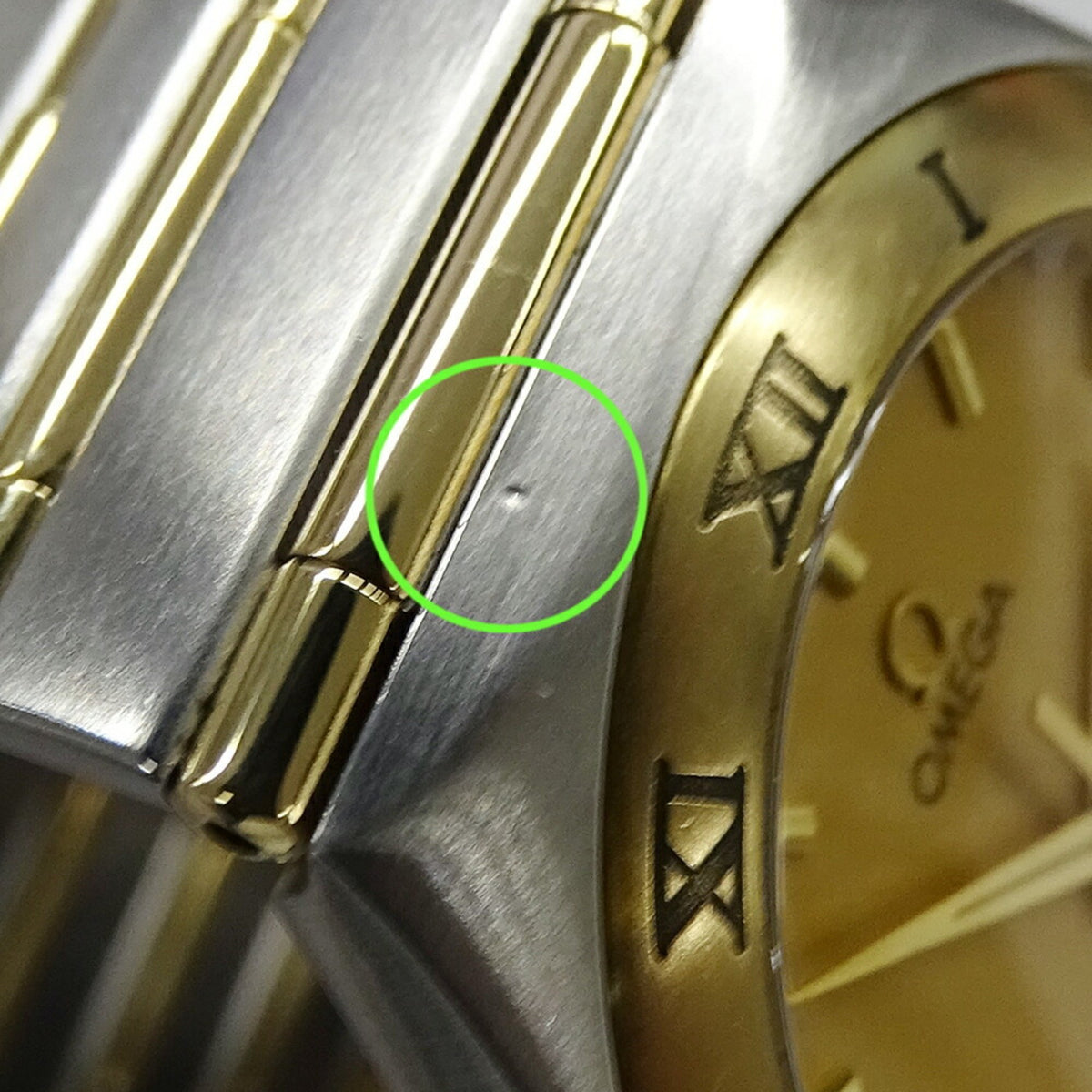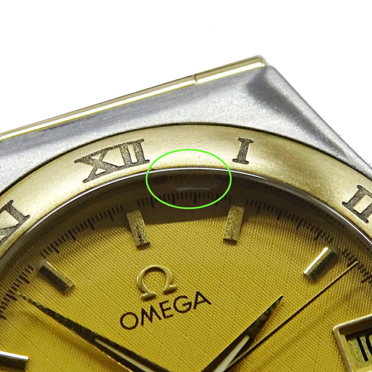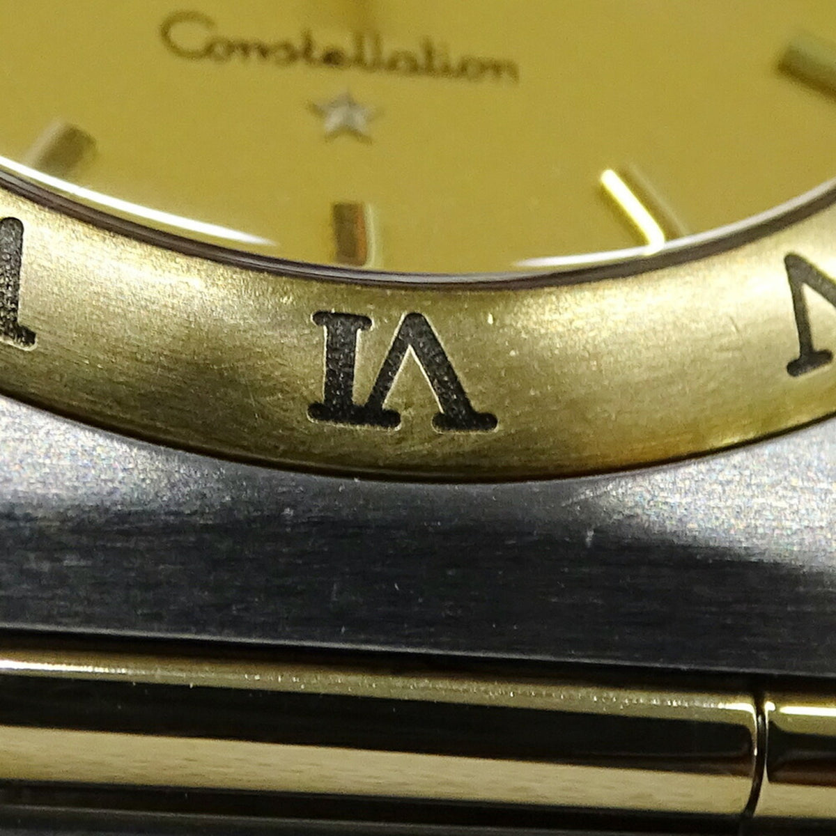 Montre Omega Constellation 1212.10 d'occasion pour homme, date, quartz, acier inoxydable, or jaune, barre complète polie