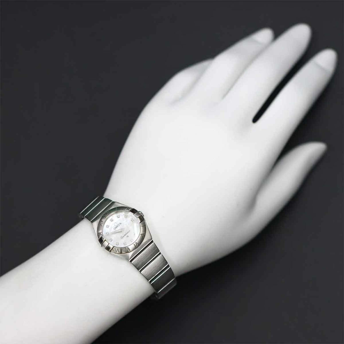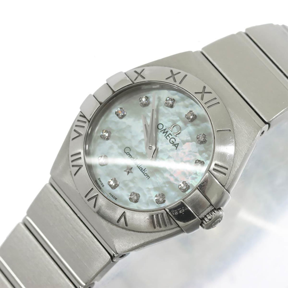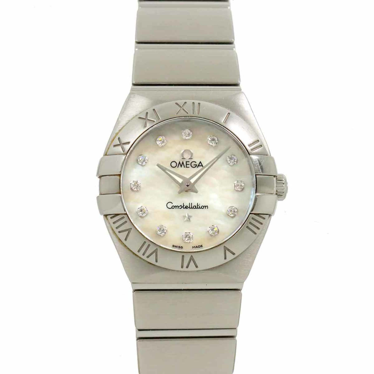Montre femme Omega Constellation 123 10 24 60 55 001 d'occasion, boîtier 12P en diamants et quartz blanc