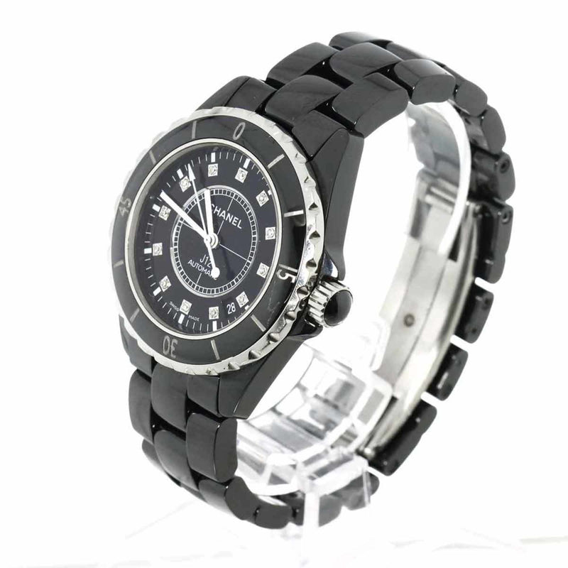Pre-Owned CHANEL J12 Black Ceramic with 8 Diamond Bezel, H3108, Women's Watch, and Stainless Steel, 40060