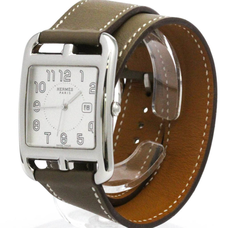 Pre-Owned HERMES Cape Cod Steel Leather Quartz Mens Watch CC2.710 Polished
