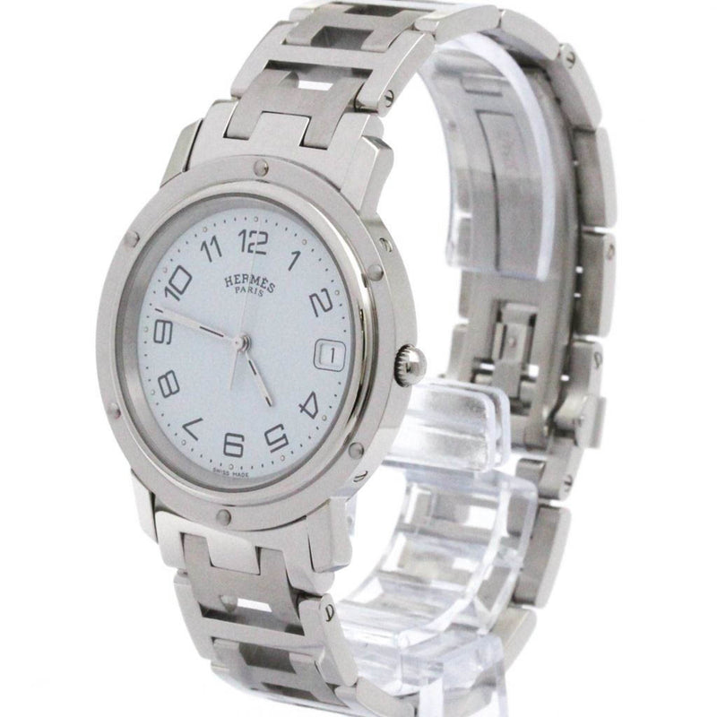 Pre-Owned HERMES Clipper Stainless Steel Quartz Mens Watch CL6.710 Polished