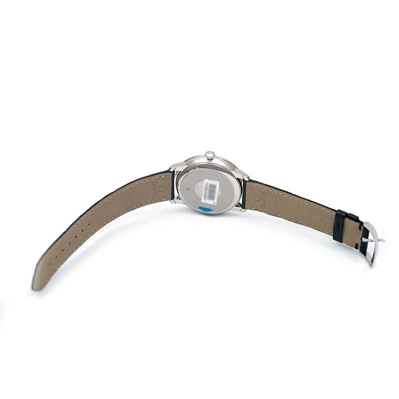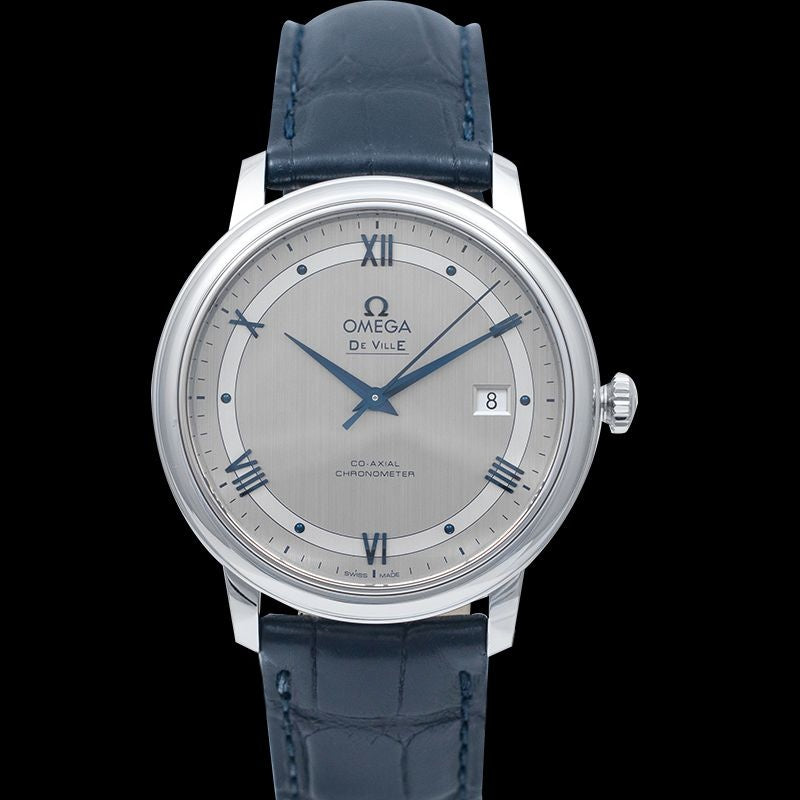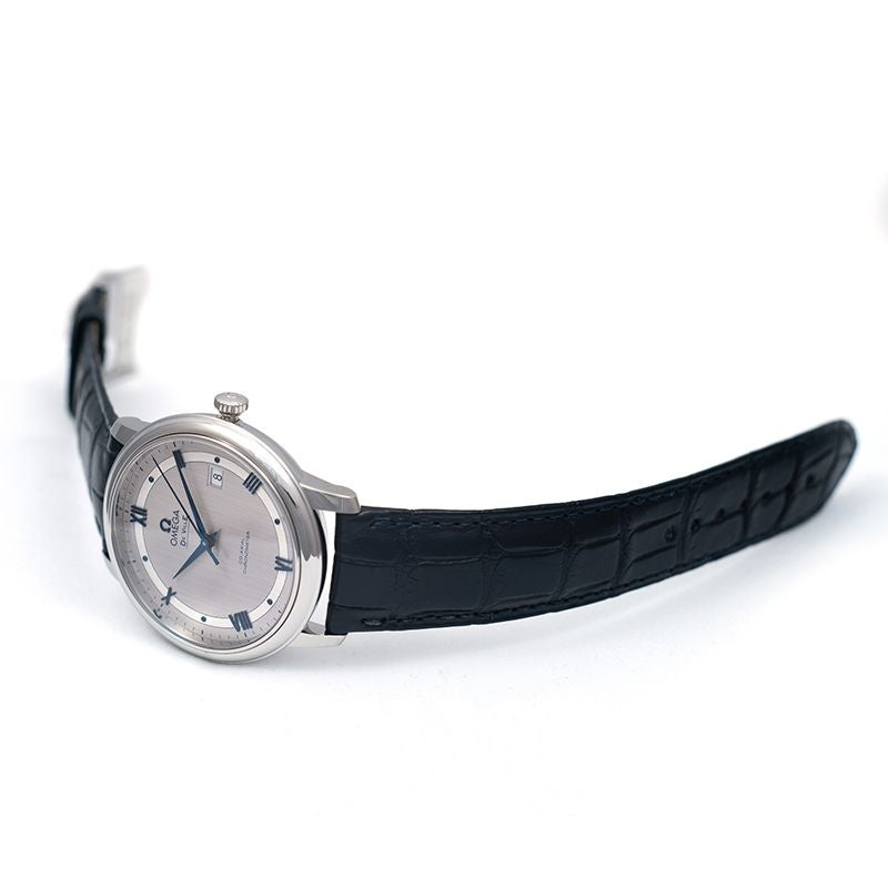 L'association acier et bracelet cuir de l'Omega De Ville en fait un modèle très attractif pour les hommes. Sa finition luxueuse s'adapte à tous les styles. Le cadran arbore un aspect argent rhodié brossé avec des index chiffres romains bleu foncé. Les couleurs argent et bleu foncé se complètent parfaitement et harmonisent parfaitement le style de la montre. La montre chronomètre en acier De Ville 424.13.40.20.02.003 possède un cadran de 39,5 mm et est étanche jusqu'à 30 mètres. Elle est également dotée d'un grand guichet de date à 3 heures.