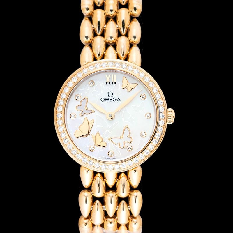 Montre De Ville 27,4 mm, cadran en nacre, or jaune 18 carats, 424.55.27.60.55.005