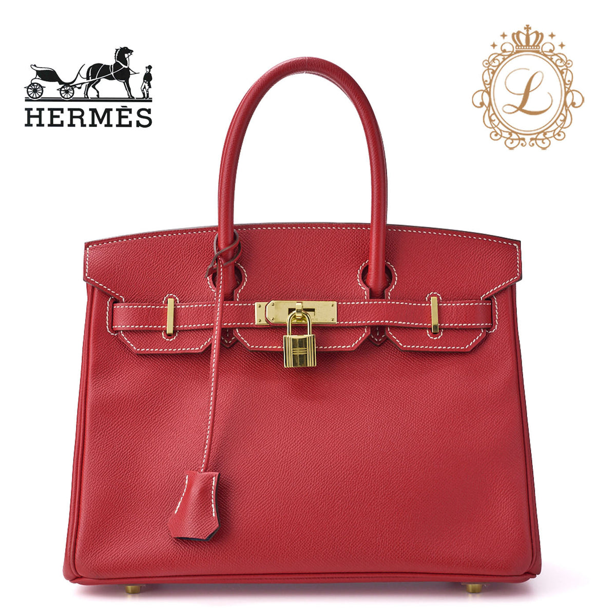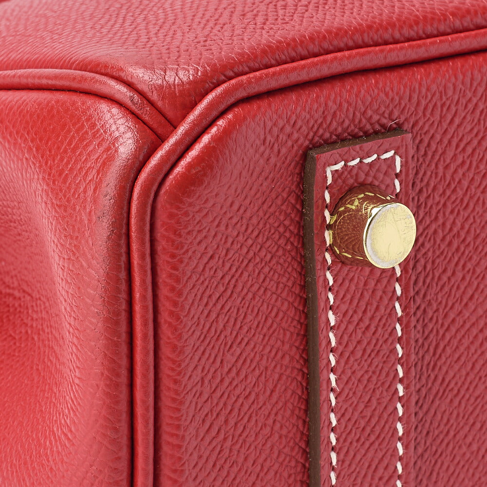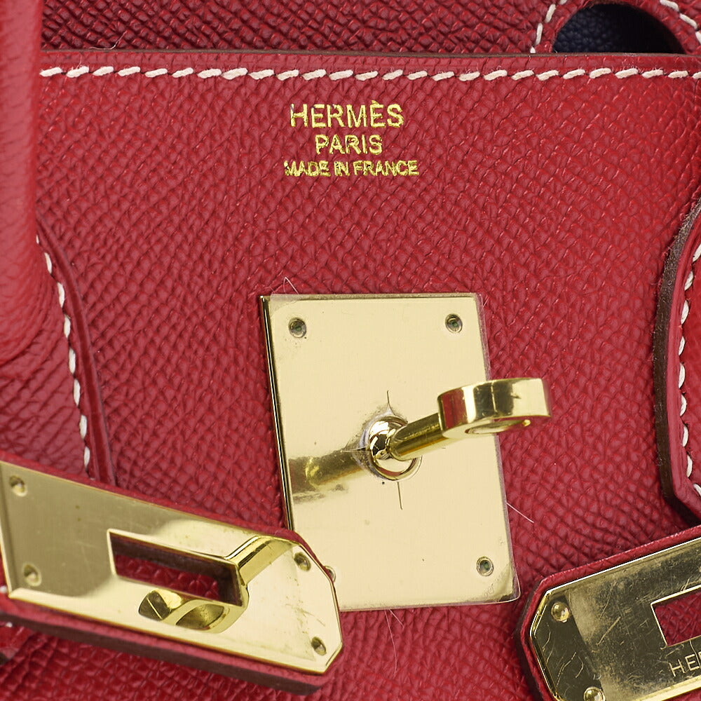 Sac fourre-tout Birkin 30 d'occasion, Vaux Epson, Rouge Casaque, finitions dorées, d'occasion