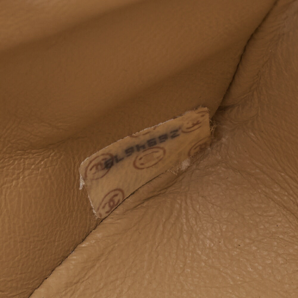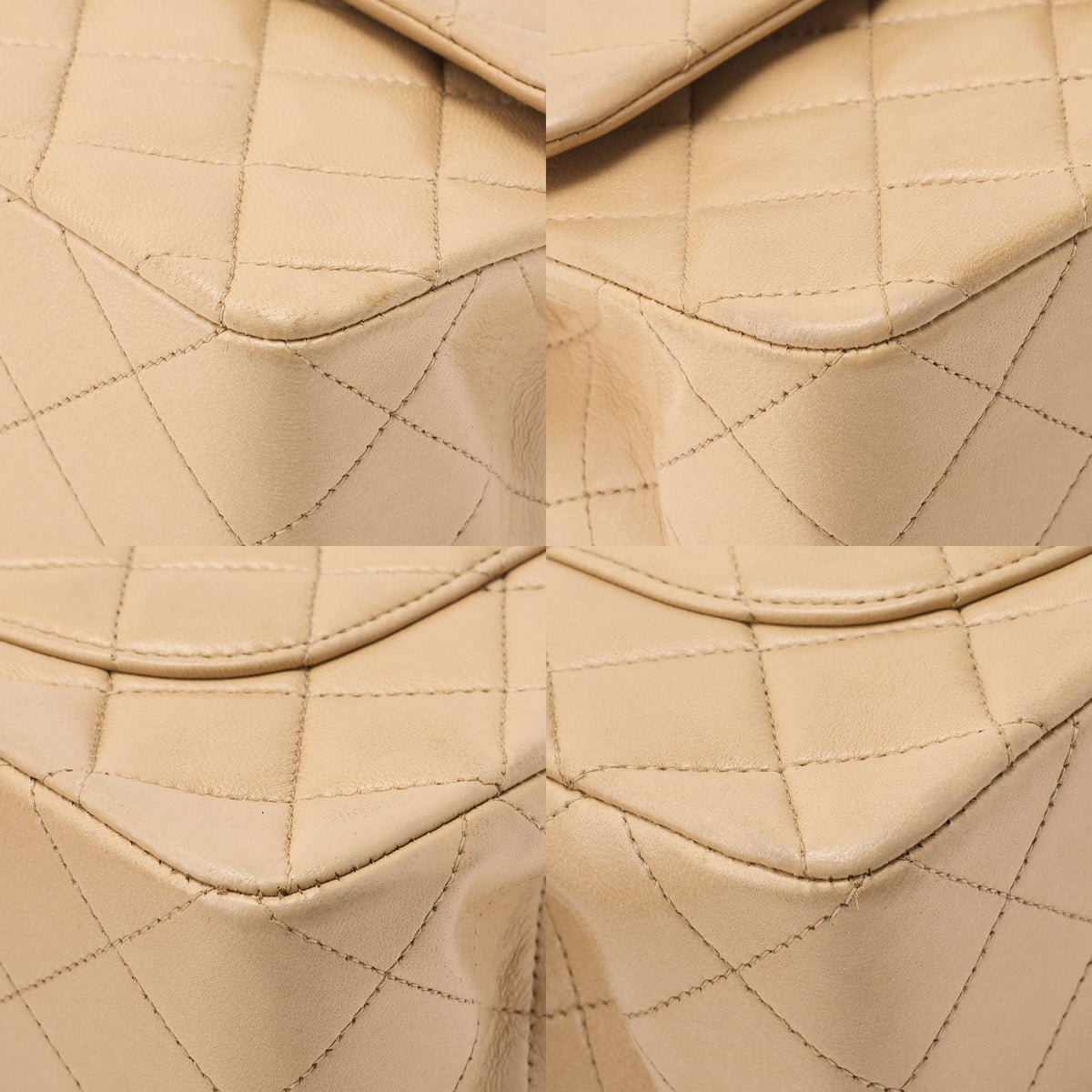Sac bandoulière chaîne matelassé à double rabat en cuir d'agneau beige et accessoires dorés d'occasion