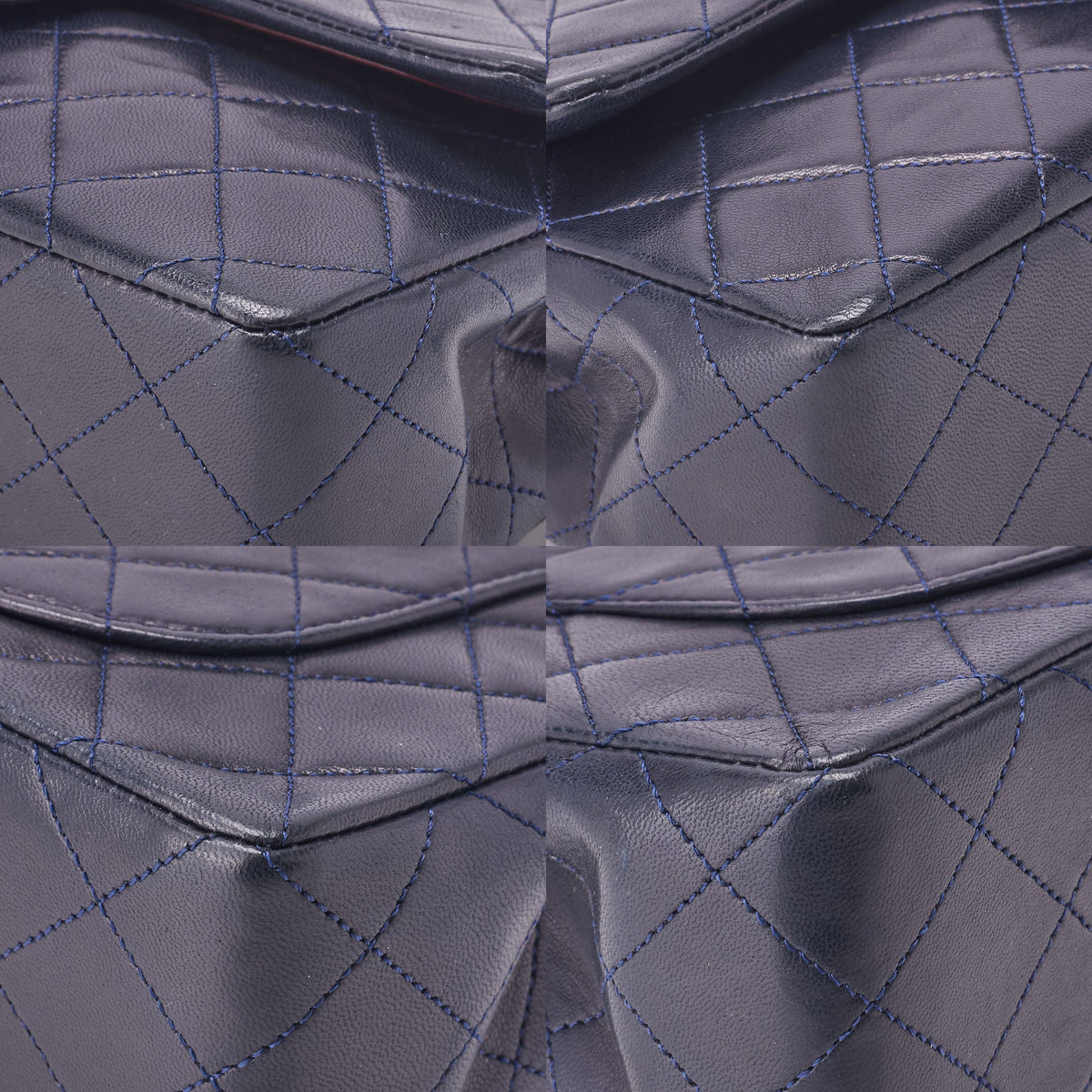Sac bandoulière chaîne d'occasion en cuir d'agneau matelassé bleu marine et accessoires dorés.