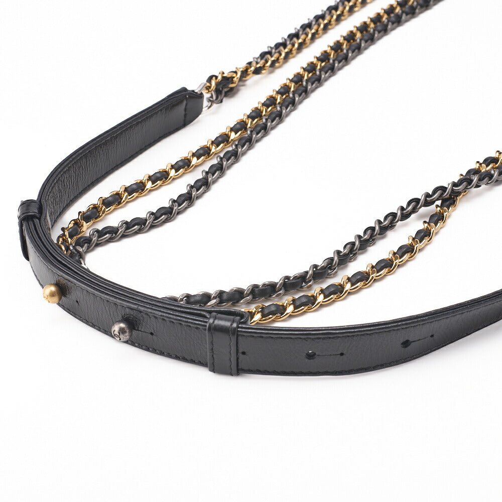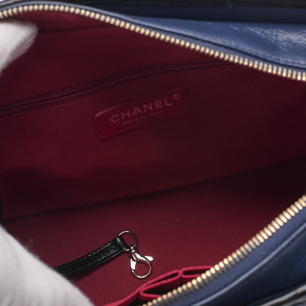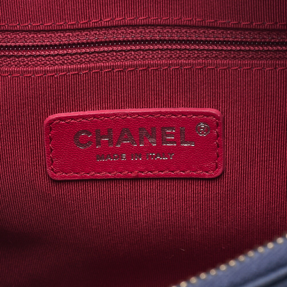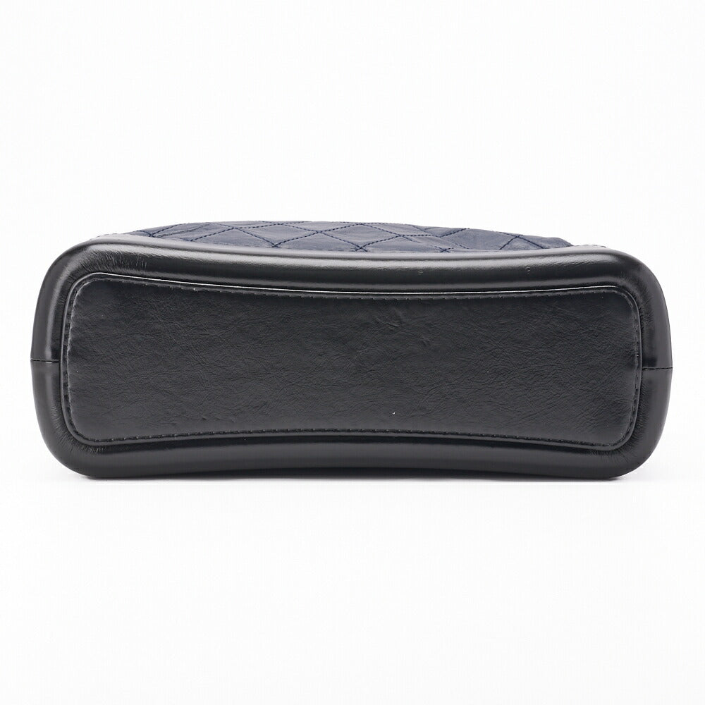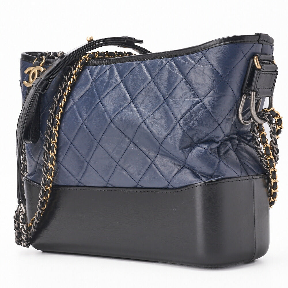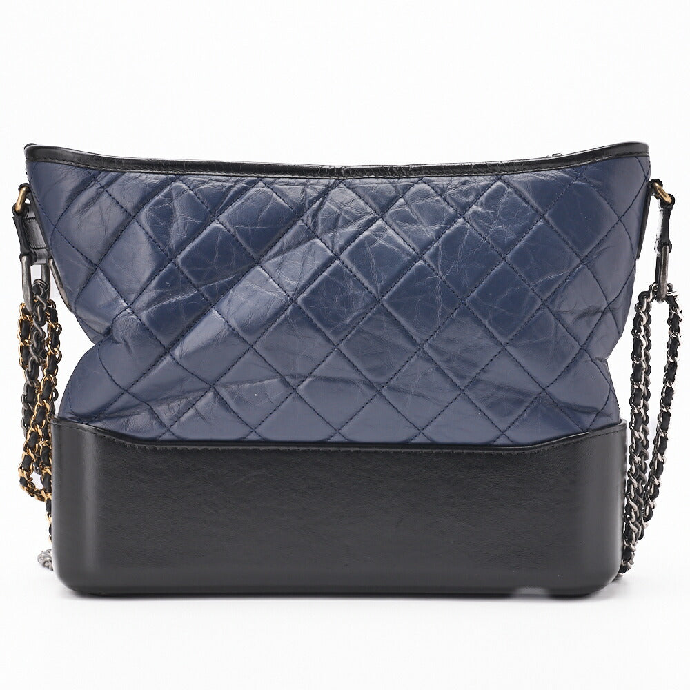 Sublimez votre style avec le sac bandoulière chaîne matelassé Gabrielle de Chanel , une pièce intemporelle alliant sophistication et fonctionnalité. Ce sac raffiné est confectionné en cuir de veau vintage dans un superbe mélange de noir et de bleu marine , rehaussé de finitions argentées et dorées pour une touche d'élégance.