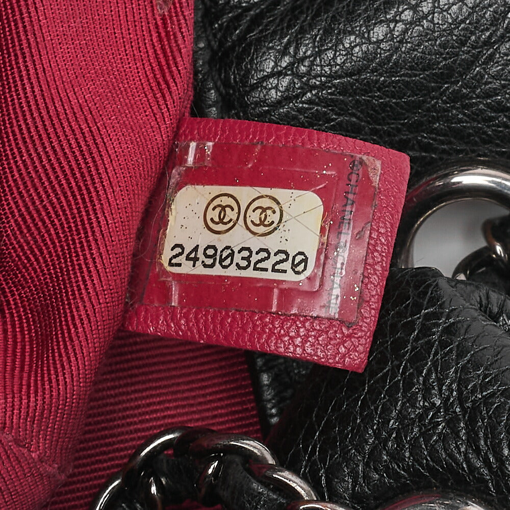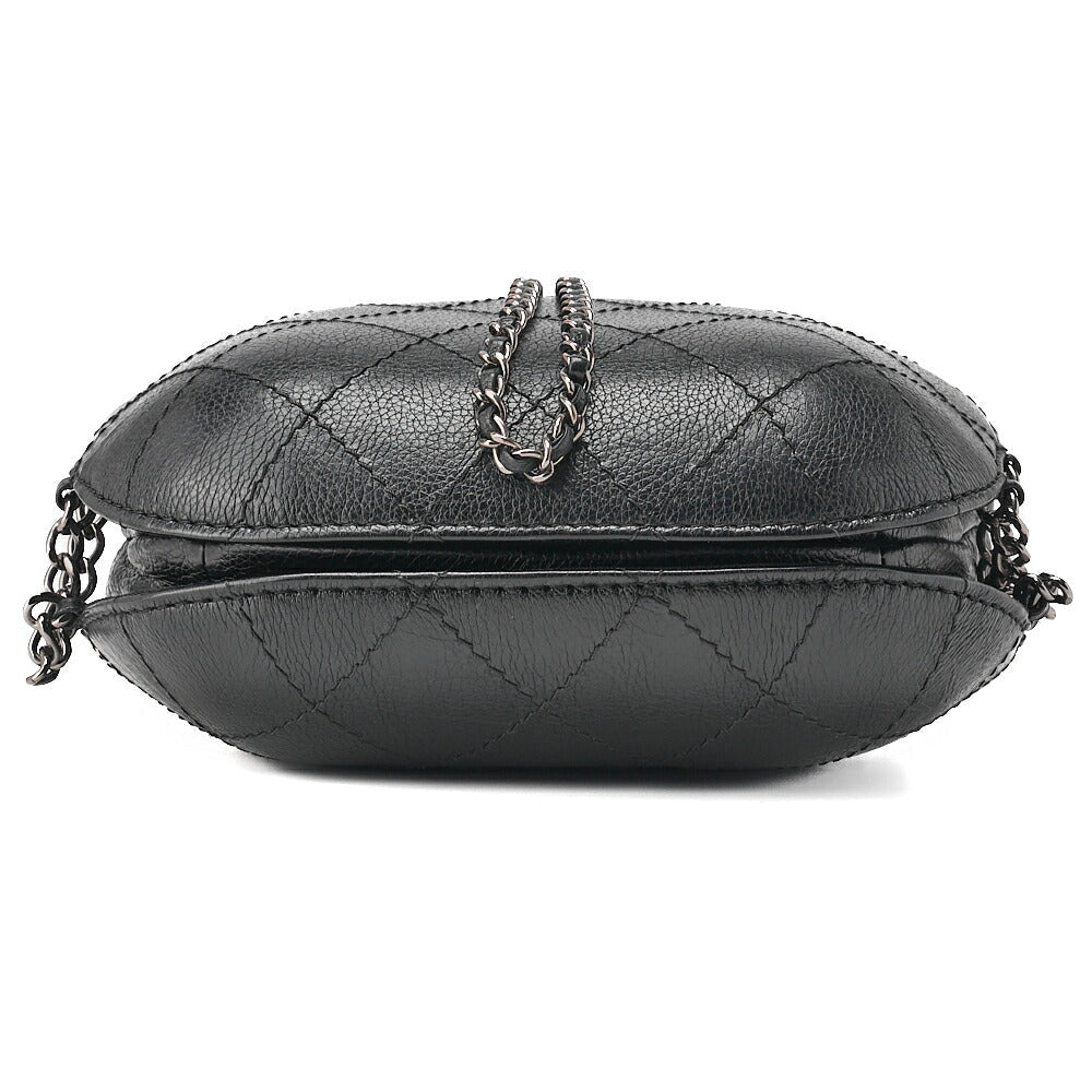 Sac bandoulière d'occasion, bandoulière chaîne, matelassé, cuir caviar, noir, finitions dorées, d'occasion