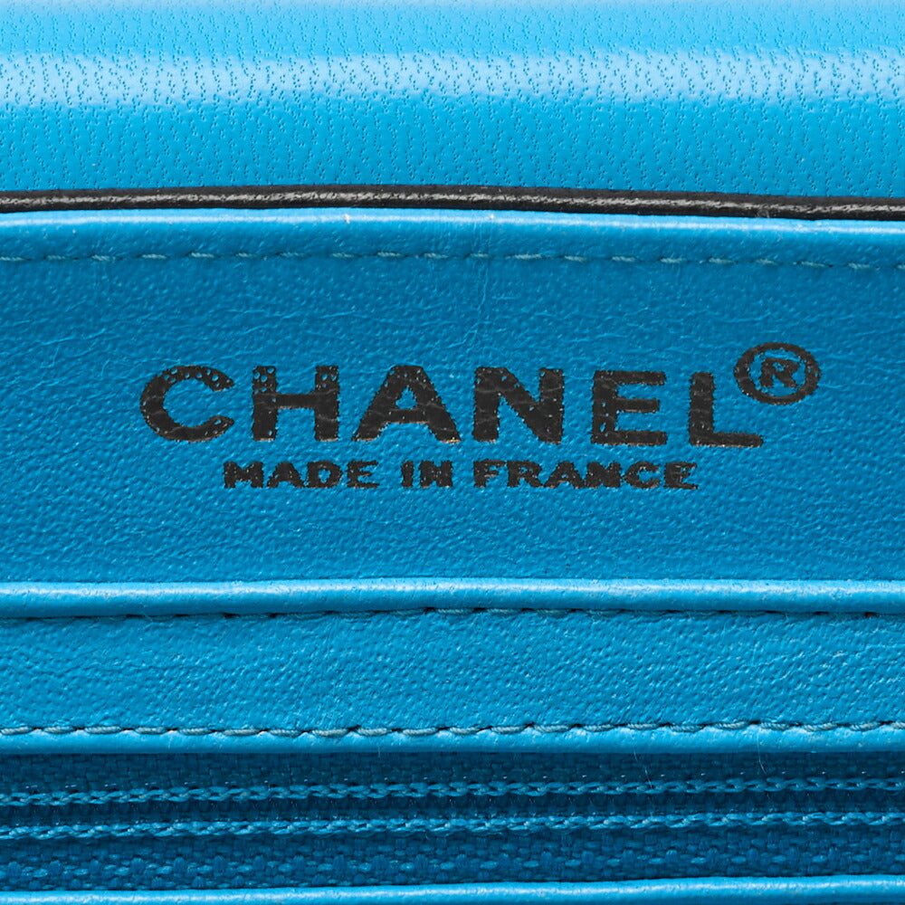 Affichez votre style avec le superbe sac bandoulière CHANEL Chocolate Bar 2.55 Lock Chain . Ce superbe modèle d'occasion est confectionné en cuir d'agneau premium dans une séduisante combinaison de noir et de bleu, rehaussé de luxueuses finitions dorées. Parfait pour ajouter une touche d'élégance à toutes vos tenues, c'est un accessoire indispensable pour les fashionistas.